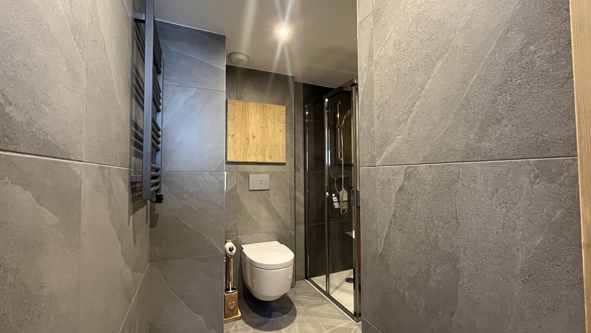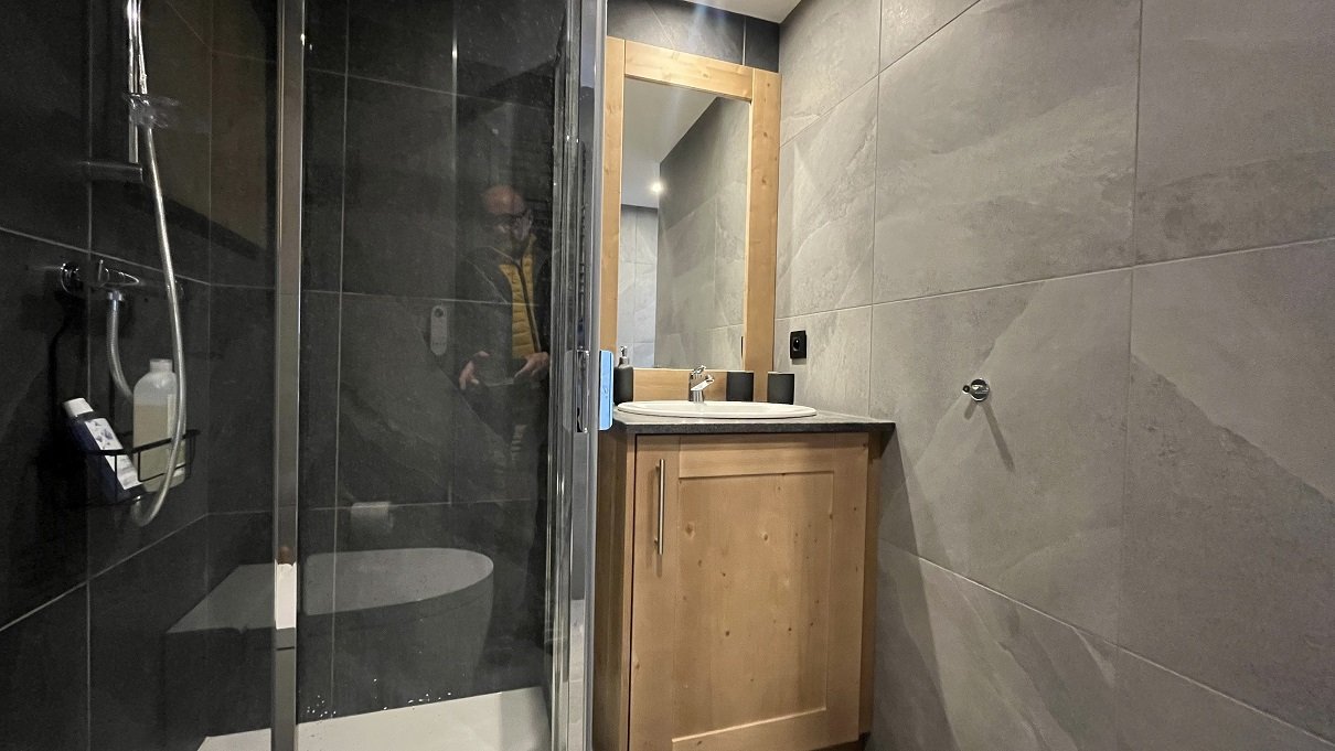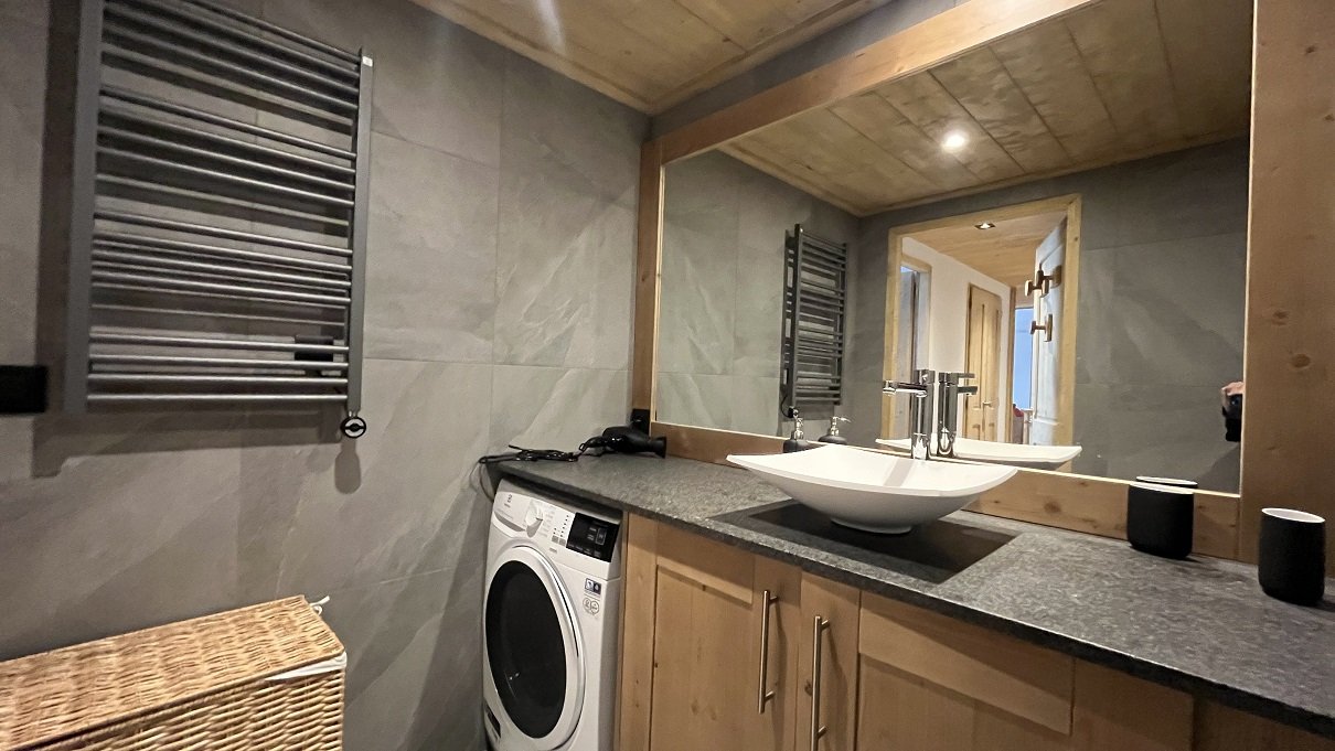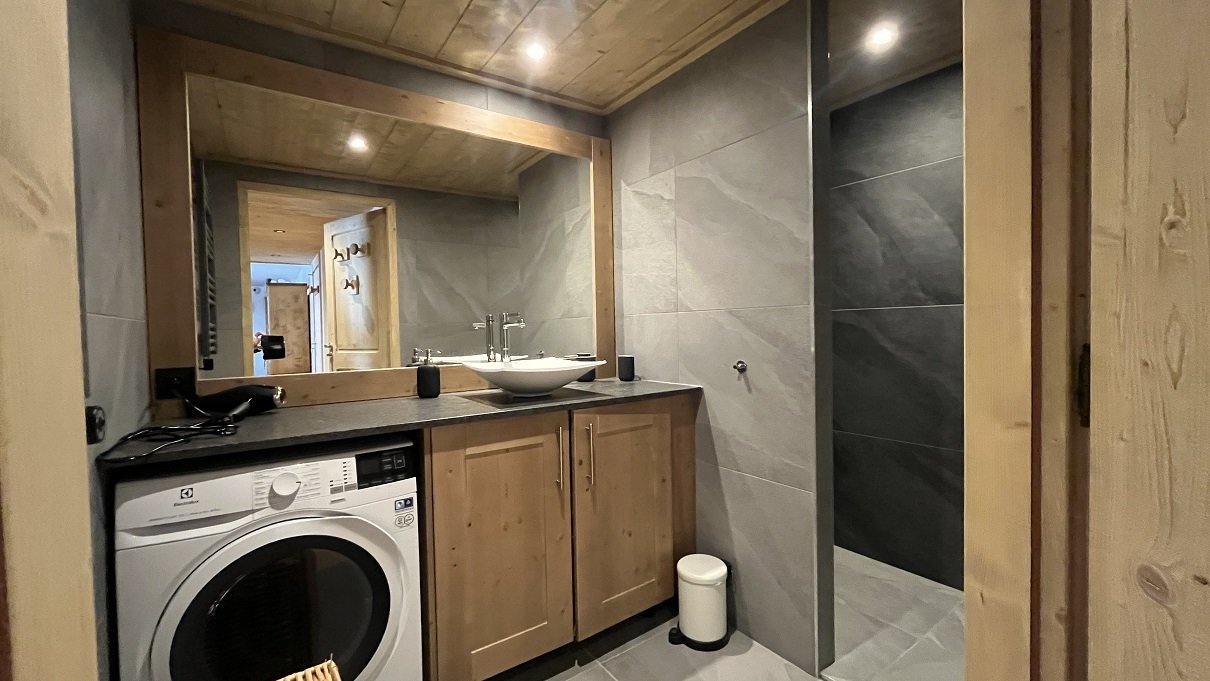 - Une salle de bains avec une douche, équipée d'un lave-linge/sèche-linge, et WC séparés