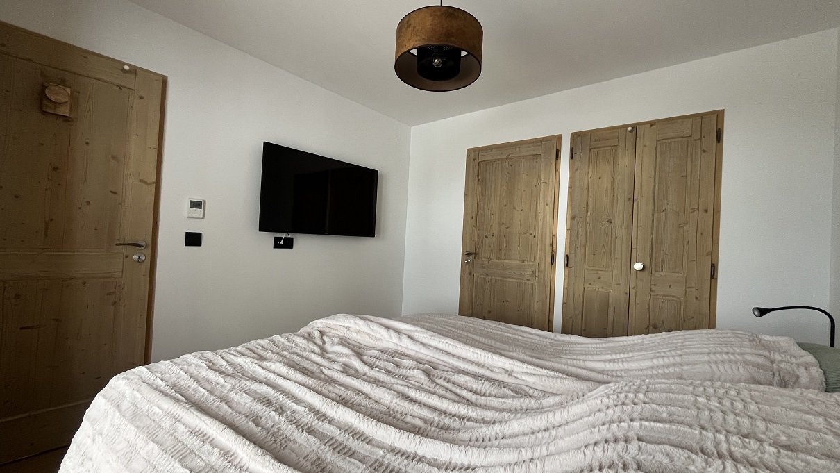 - Un séjour spacieux et confortable, équipé avec deux canapés et téléviseur avec un balcon vue sur la piste et le Mont Blanc !