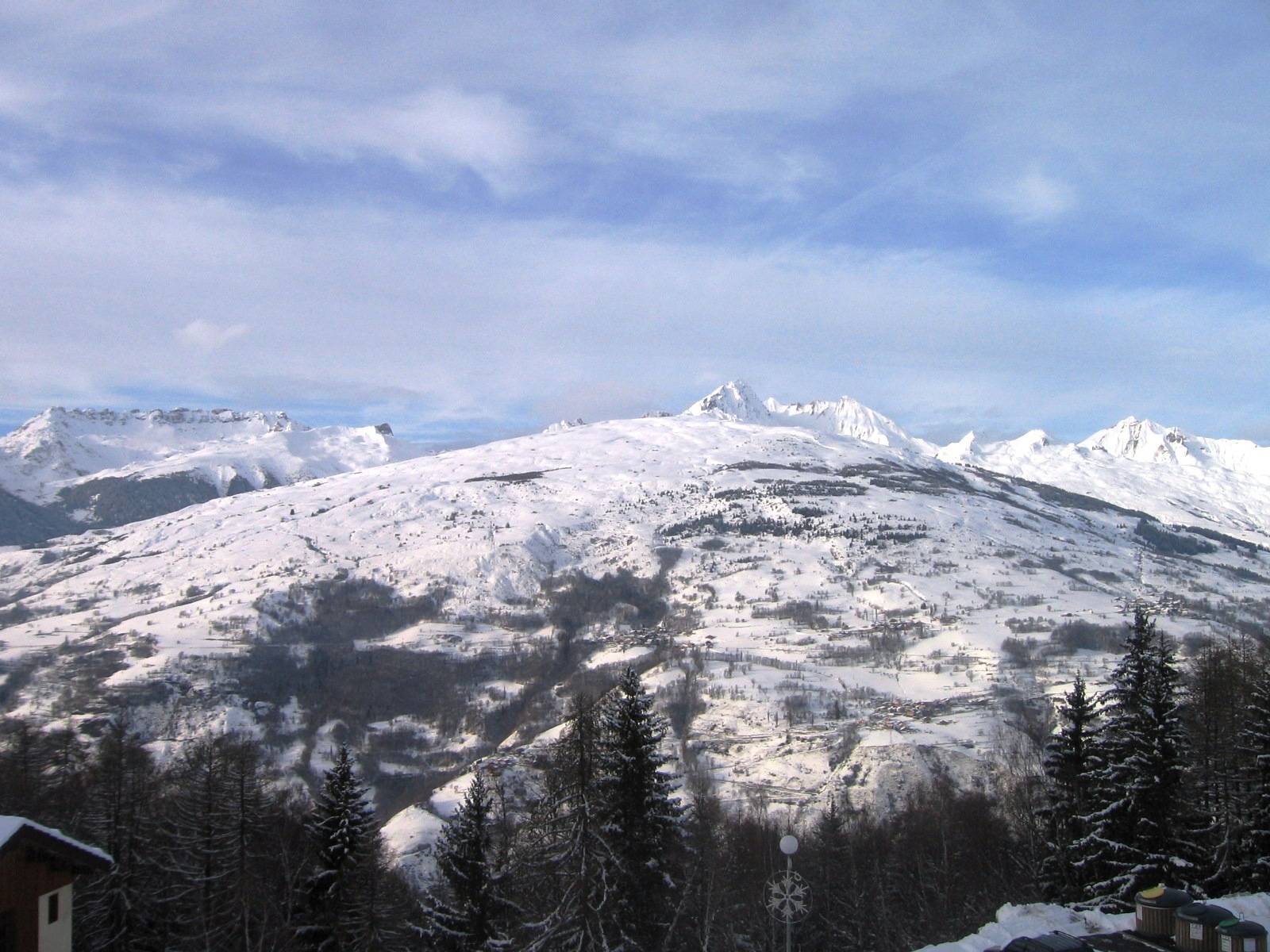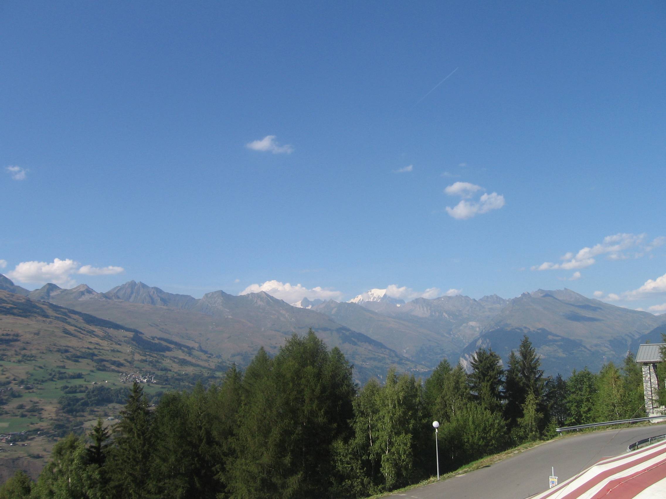 Le balcon avec vue sur le Mont Blanc est exposé Nord. Le casier à skis est dans la résidence.