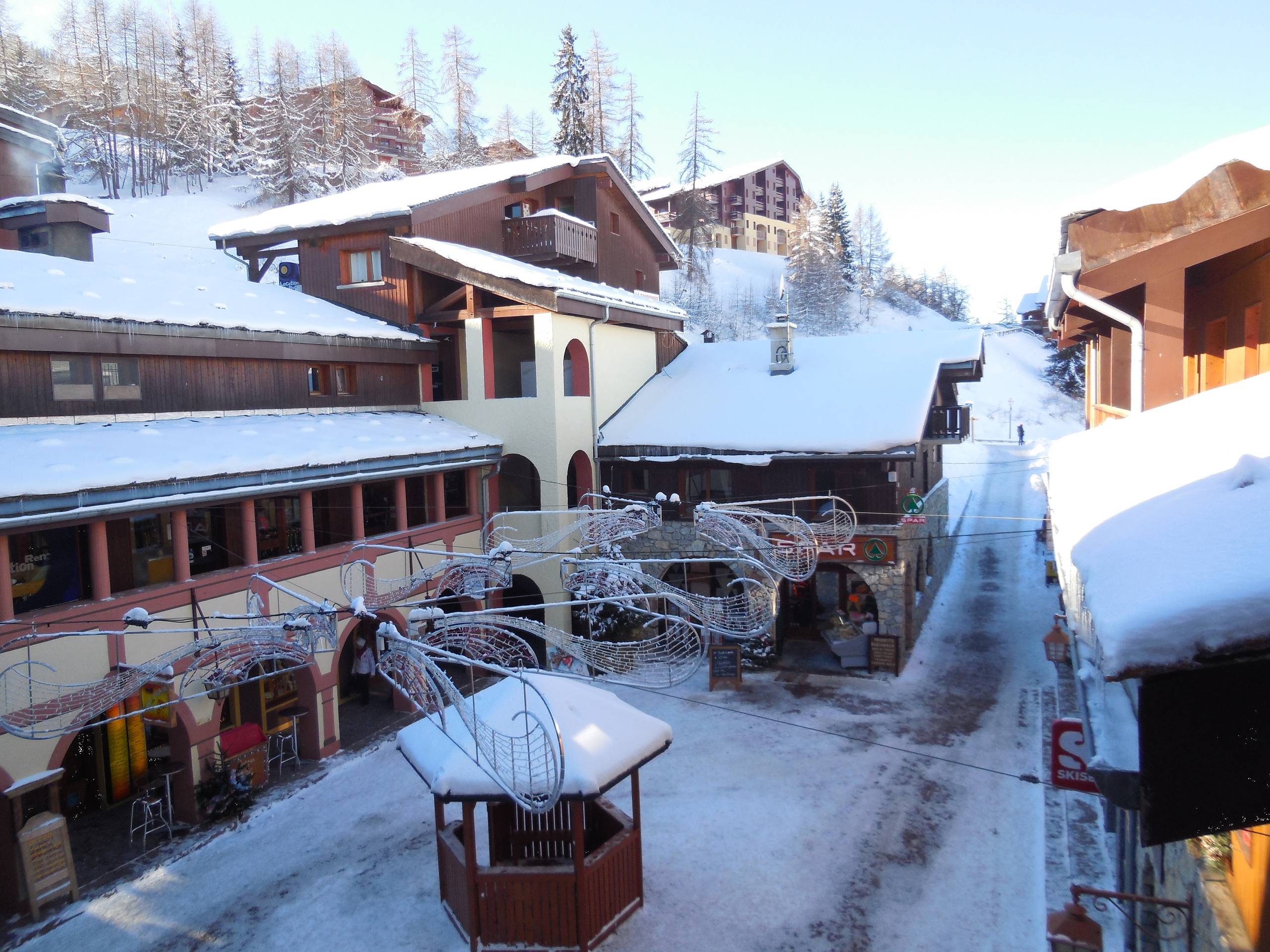 Le balcon donne sur la place du Carreau et est exposé Ouest. Le casier a ski est dans la résidence.