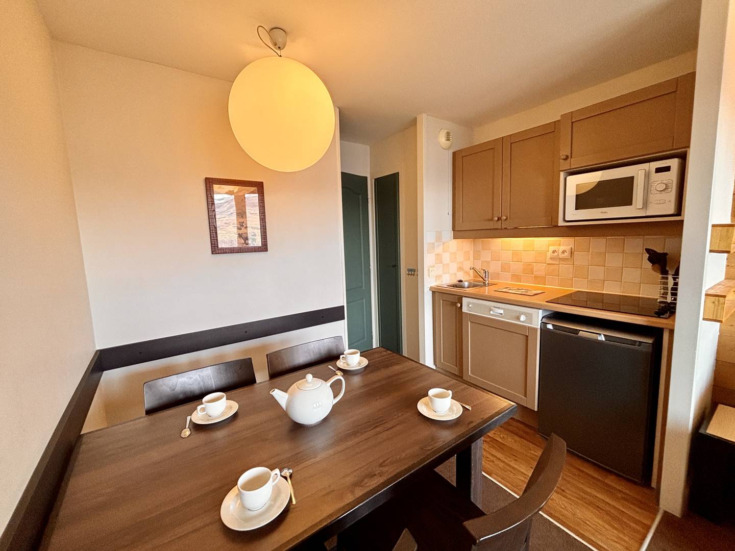 Cet appartement de 25 m², classé 1 étoile, est situé au 4ème étage (avec ascenseur) et est équipé pour 4 personnes. Il comprend :