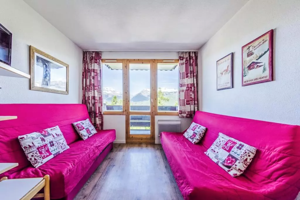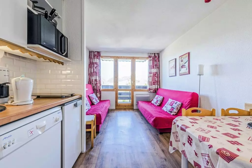 Les atouts de ce logement : belle vue vallée, accès pistes à 10m, espace aquatique à 3km, navette gratuite, casier à ski, table et fer à repasser, déco montagne, balcon aménagé, rangements...