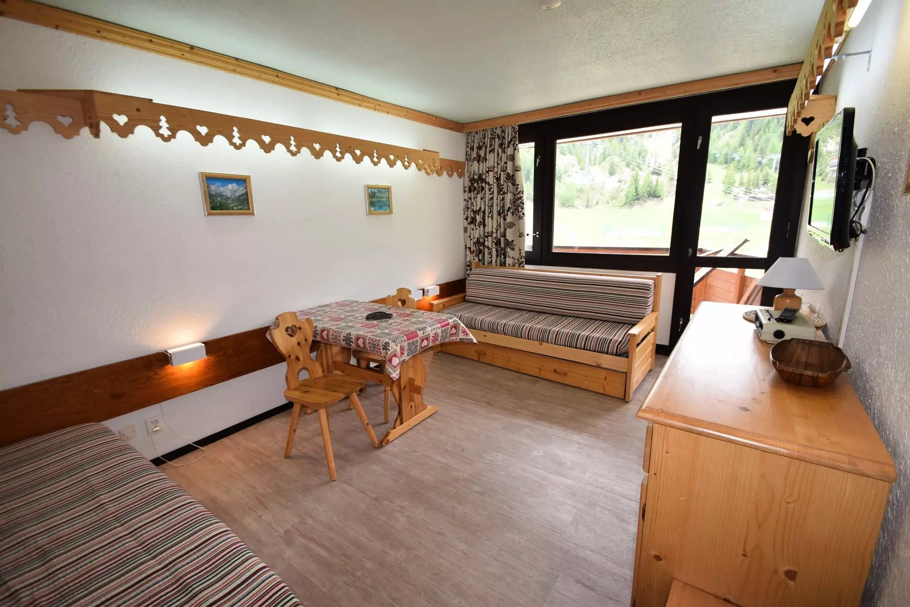 Studio 3 pers, 22m2, exposé SUD avec balcon, vue sur les pistes, au 8ème étage avec ascenseur. Cuisine : dans le couloir/entrée : 2 plaques vitrocéramiques, réfrigérateur, lave-vaisselle, four multifonction, cafetière électrique. Séjour : coin repas, 2 lits gigognes et 1 lit 1 pers, télévision. SDB : baignoire, WC inclus, Studio rénové, très clair et bénéficiant d'une très belle vue sur les pistes et la montagne. Sol : plastique.Literie: 3 couettes 1 pers. Casier à skis N°844 au rdc côté UCPA, niveau sortie pistes -Résidence située au pied des pistes, reliée aux commerces par galerie. Parking extérieur à proximité de la résidence. ANIMAUX NON ADMIS et APPT NON FUMEUR - Ménage de fin de séjour, draps, serviettes et forfaits ski sont en option.