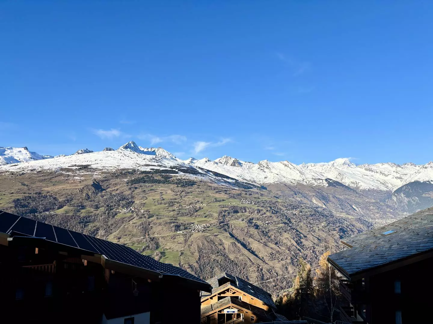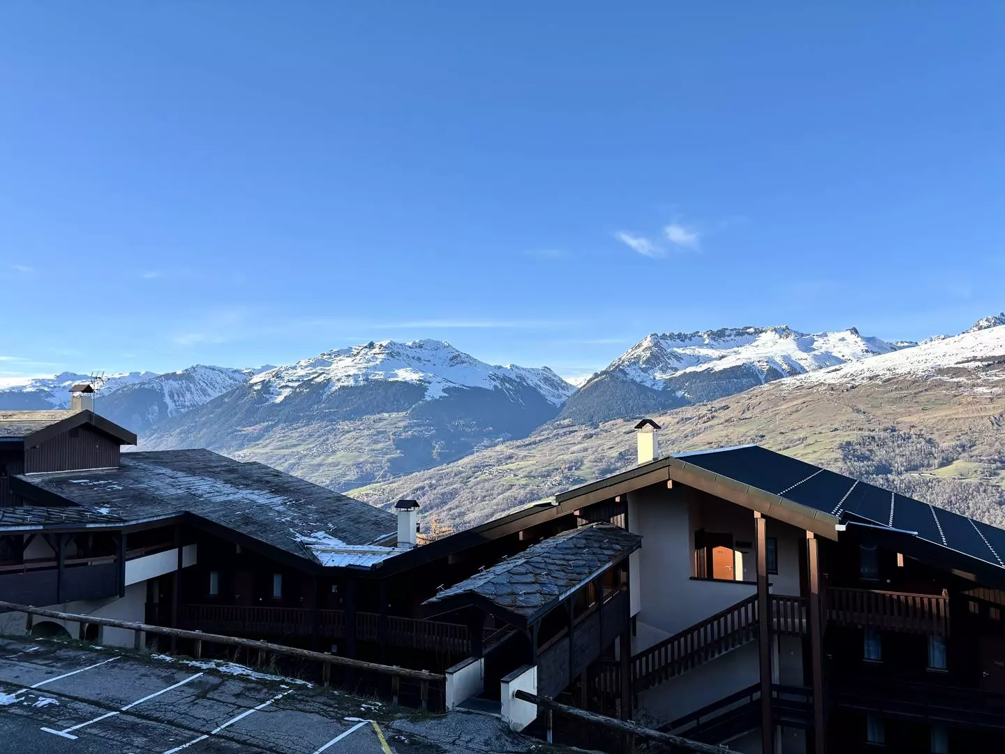 Un Balcon exposé nord-ouest avec vue sur le Mont-Blanc. Le casier a ski est dans la résidence.