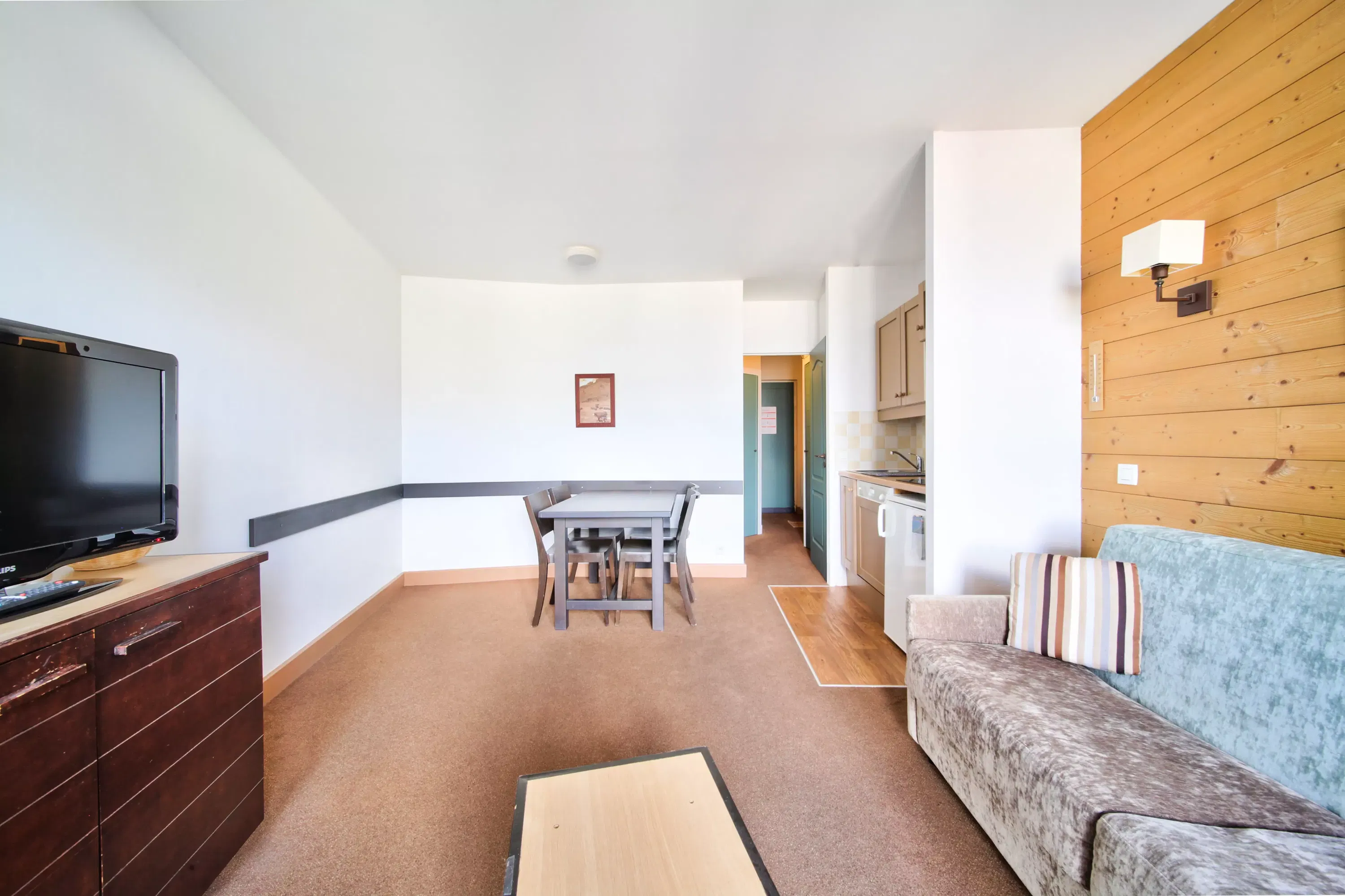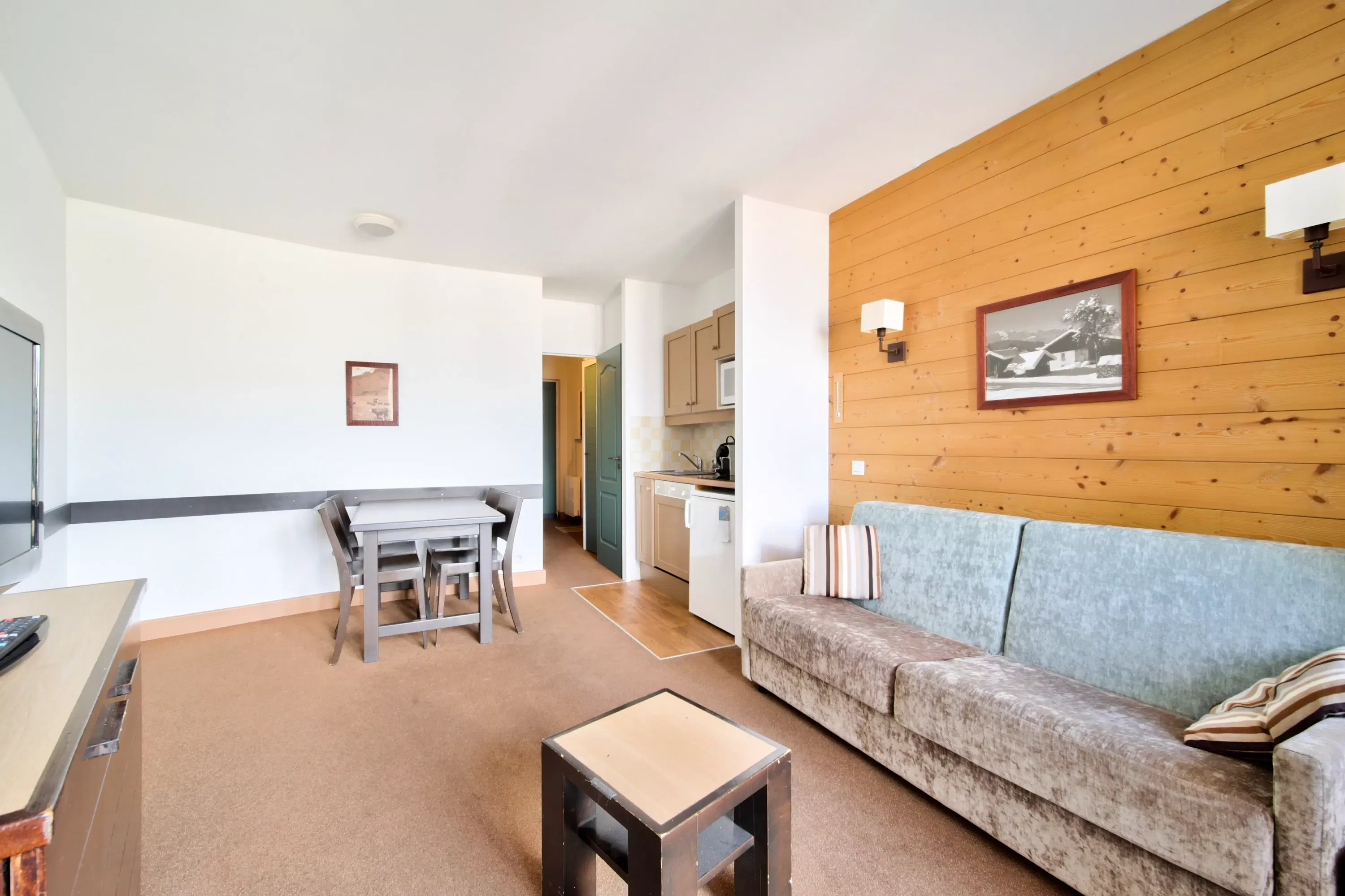 Votre location de vacances comporte : 1 séjour, 1 coin cabine, 1 cuisine, 1 salle de bain.