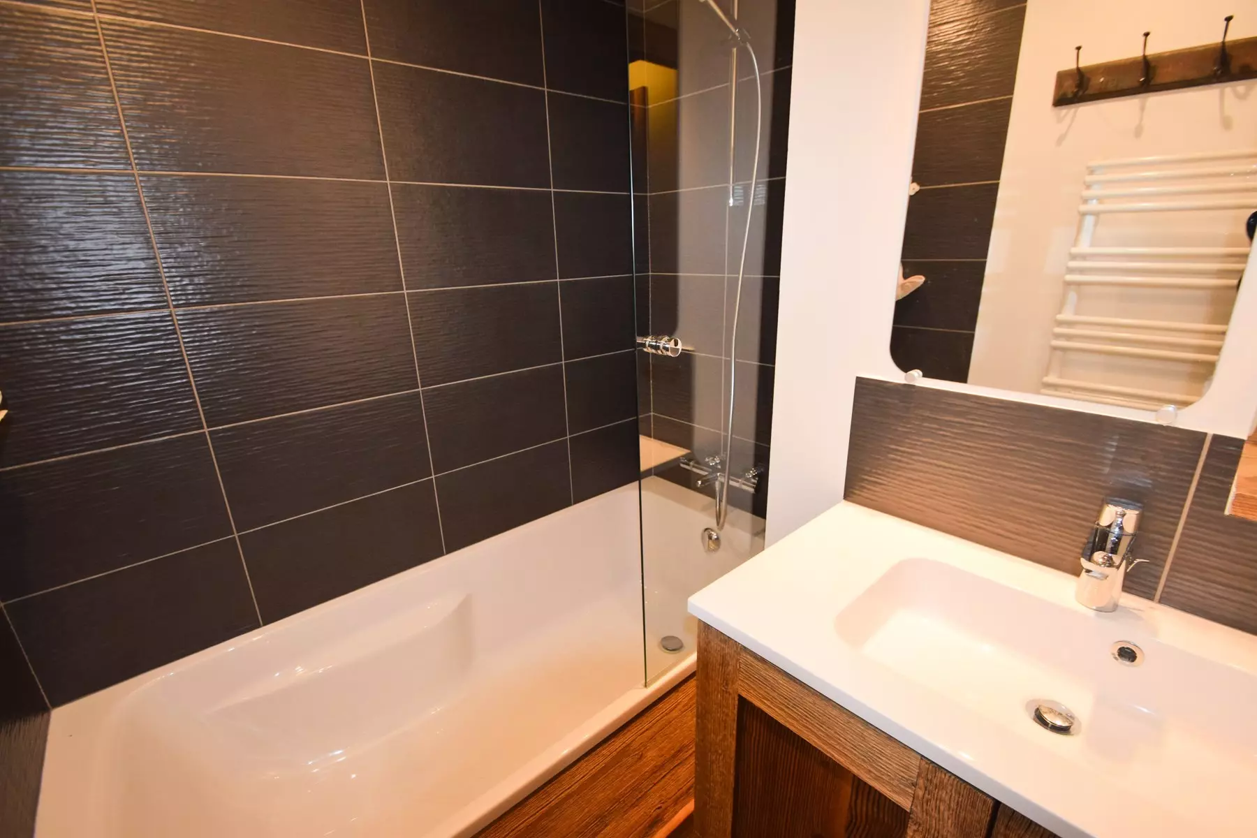 Bel appartement de 5 pièces, 60m2 env + sous pente 20m2 utiles env, en triplex, pour 8/10 pers. 2ème étage sans ascenseur, balcon avec belle vue sur les pistes - Étage intermédiaire : séjour avec coin repas, coin salon, 1 canapé-lit convertible 160cm. Cuisine ouverte : four, four micro-ondes, lave-vaisselle, réfrigérateur, 4 plaques induction, Nespresso (dosettes non fournies) hotte. 1 WC séparés, Lave-linge/séchant - ETAGE HAUT : Mezzanine ouverte : 1 lit double 140cm - CH 1 (sans porte) : sous pente : 1 lit double 140cm, TV - Rangements - Salle de douche : douche + WC inclus - ETAGE BAS : CH 2 : 1 lit double 160cm - TV, placard - CH 3 : 1 lit double 140cm - TV - SDB : baignoire - WC séparés -Sols : lames pvc - Ménage de fin de séjour, draps, serviettes et forfaits ski en option. ANIMAUX NON ADMIS Appartement non fumeur- Équipement musique - WIFI inclus - Volets roulants - 3 casiers à skis - Très Bel appartement chaleureux, rénové style contemporain Montagne, très belle vue sur Pistes.