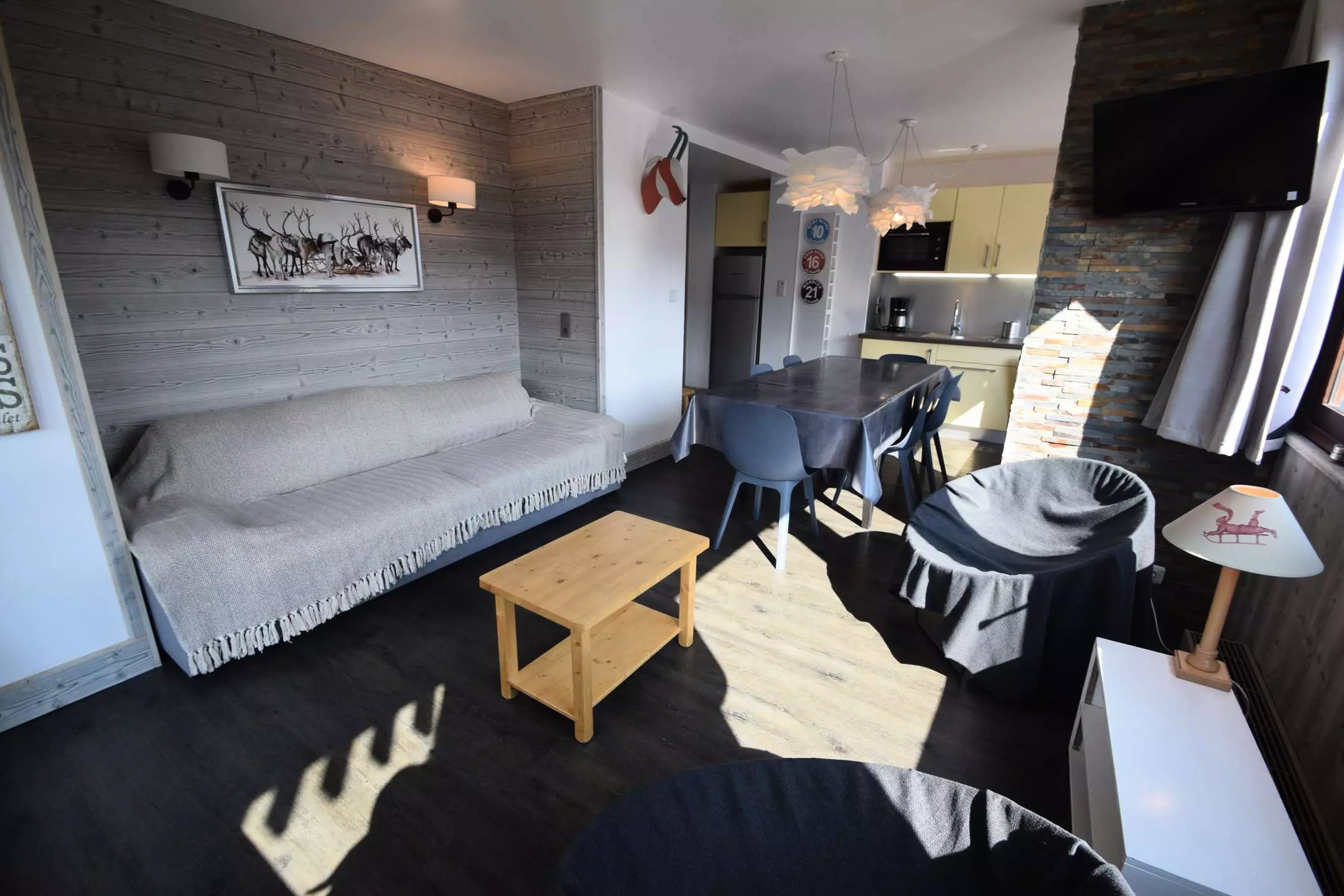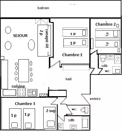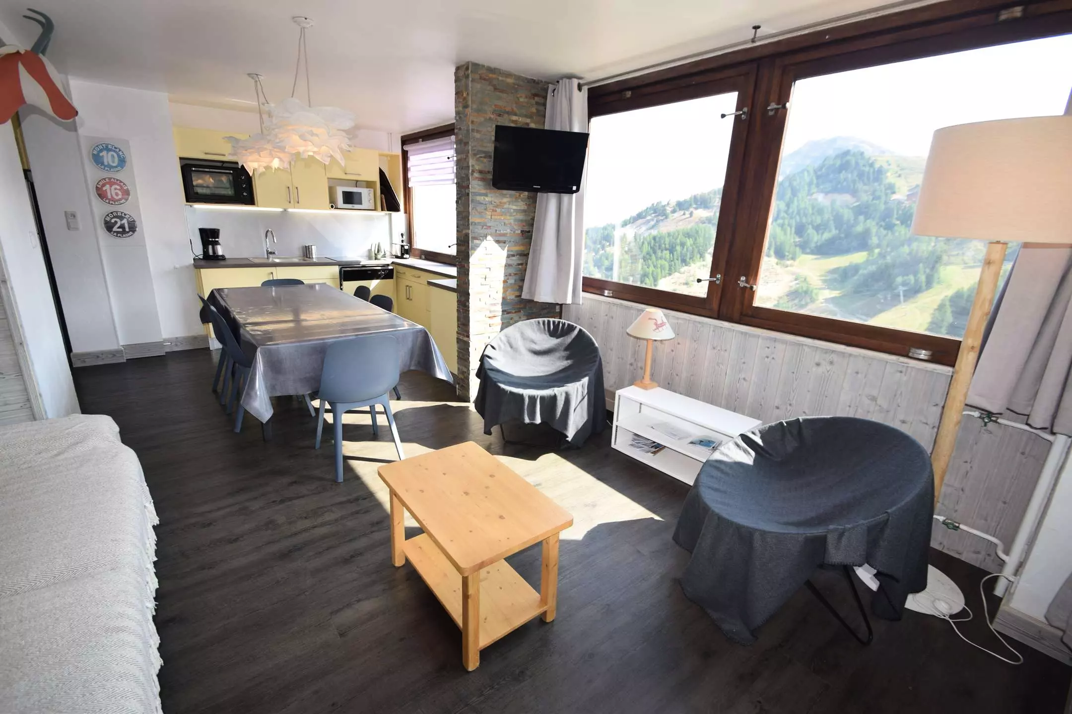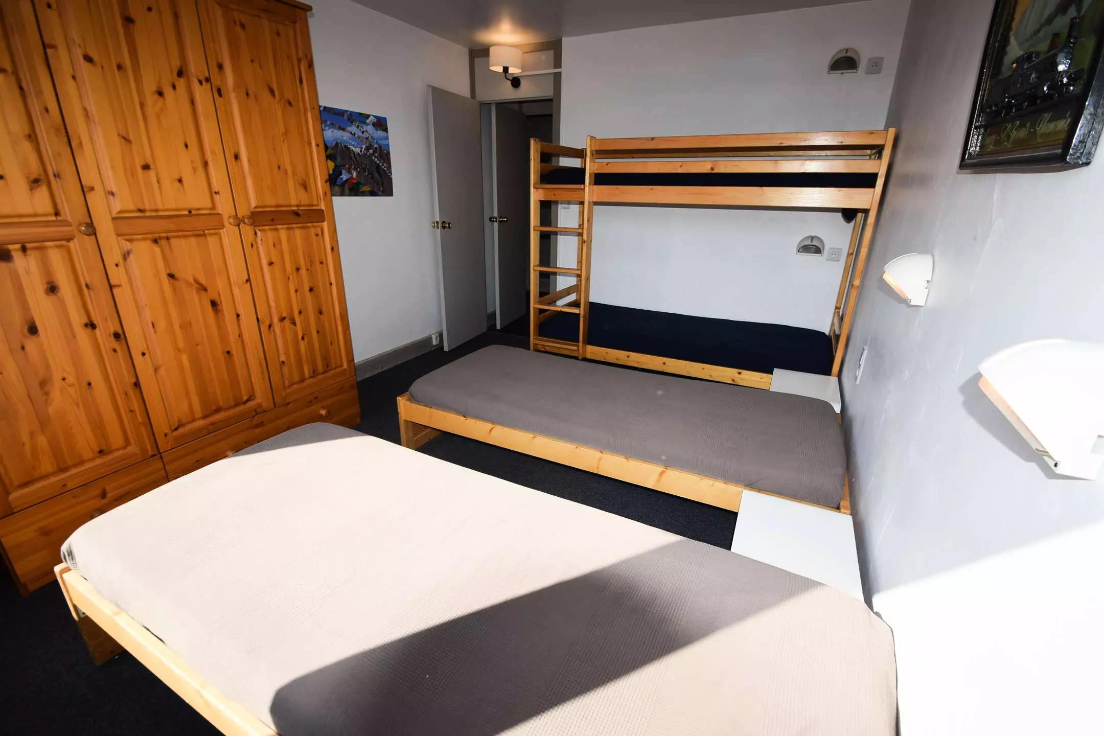 Appartement 4 pièces, 8/10 pers.,80m2, rénové, balcon exposé Plein Sud, belle vue sur les pistes - 13ème étage avec ascenseur - Cuisine ouverte sur séjour : 3 plaques élect., four, four micro-ondes, grand réfrigérateur avec congélateur, lave-vaisselle, cafetière électrique filtre et Nespresso. Séjour : coin repas, coin salon avec 1 canapé-lit 2 pers. 160cm - TV - Chambre 1 : 2 lits 1 pers. (80cm) - Chambre 2 : 2 lits 1 pers. (90cm)- Chambre 3 : 2 lits superposés + 2 lits 1 pers. (80cm) 2 Salles de bains : 1 avec baignoire et 1 avec douche/wc inclus - 1 WC séparés. Literie : 8 couettes 1p et 1 couette 2p. Appartement non fumeur, animaux non admis. En option et en supplément: Ménage de fin de séjour, draps, serviettes, forfaits ski.