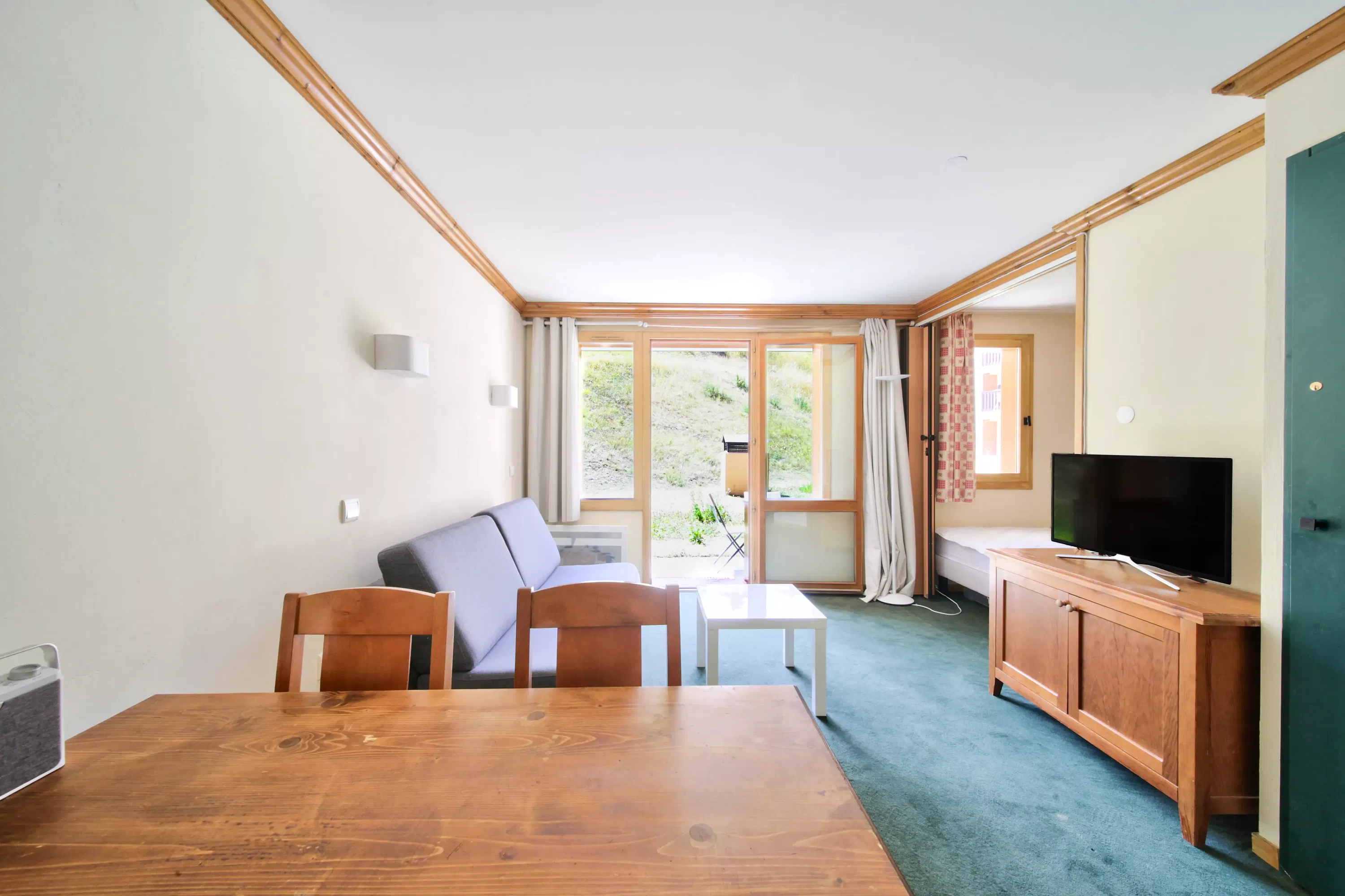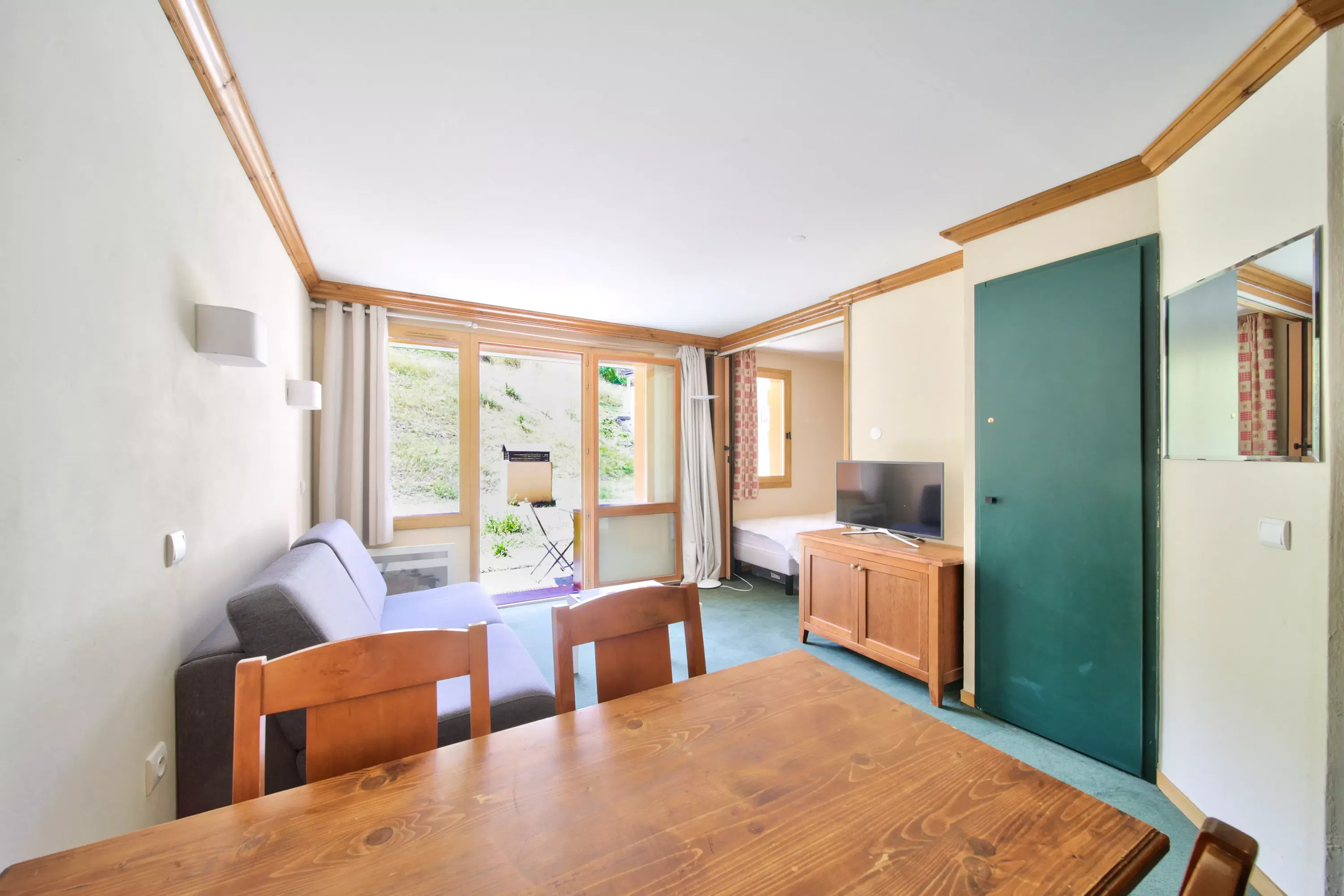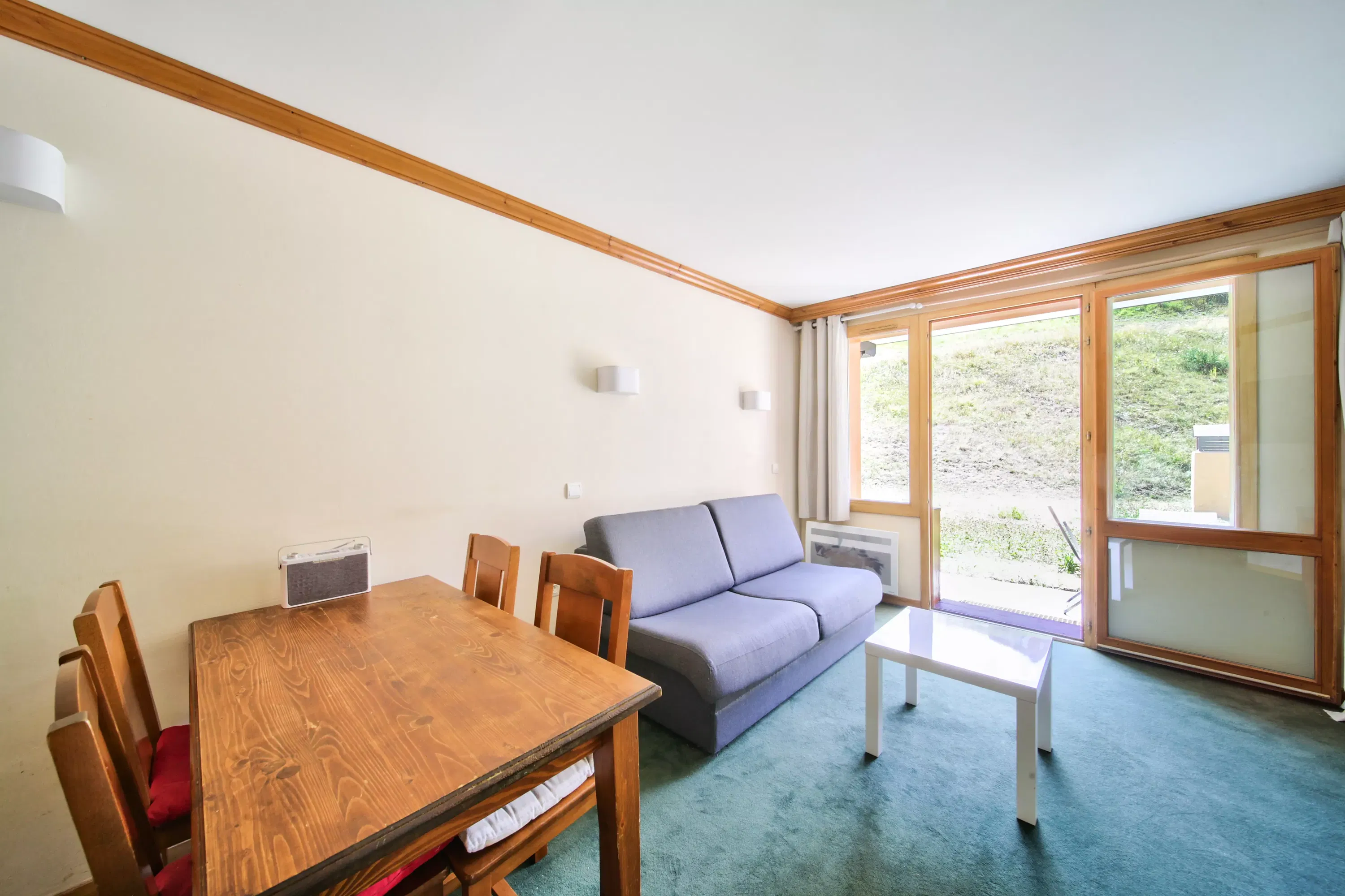 Les atouts de votre location : Au pied des pistes, cette location de vacances située en rez-de-chaussée offre un accès direct aux remontées pour un séjour pratique à la montagne. Elle peut accueillir jusqu’à 4 personnes grâce à un séjour avec un canapé-lit et un coin cabine fermé. Vous profiterez d’une terrasse couverte exposée sud avec vue sur la montagne, idéale pour vos moments de détente. À seulement quelques centaines de mètres des commerces et activités, c’est un pied-à-terre fonctionnel pour des vacances en famille ou entre amis. Wifi inclus.