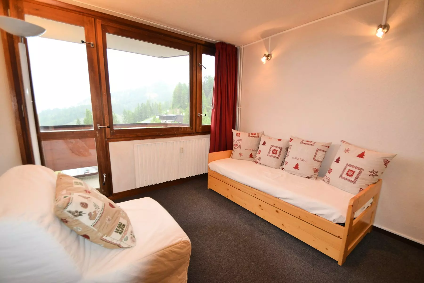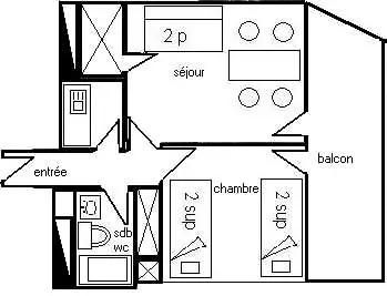Appartement 2 pièces, 5 pers, 31 m2, Balcon exposé Nord, vue sur le Mont Blanc et la vallée - 8ème étage avec ascenseur - Cuisine à l'entrée dans couloir : 2 plaques électriques., réfrigérateur, four micro.ondes lave-vaisselle - Séjour : coin repas, 1 canapé-lit pour 2 pers. (130cm). TV - Chambre: 2 lits gigognes 1 pers et 1 lit BZ 1 pers 80x190cm - Salle de bains : baignoire - WC inclus - Literie : couettes - Appartement bénéficiant d'une très belle vue sur la vallée et le Mont Blanc - Casier à skis n° 817 côté Villages au niveau -1 - ANIMAUX NON ADMIS et APPT NON FUMEUR - Ménage de fin de séjour, draps, serviettes et forfaits ski sont en option.