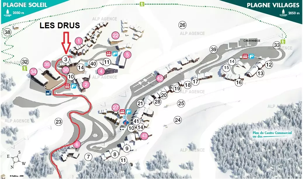 Résidence située au pied des pistes et dans le centre commercial. Plagne Soleil est reliée à Plagne Villages par des navettes en bus gratuites.