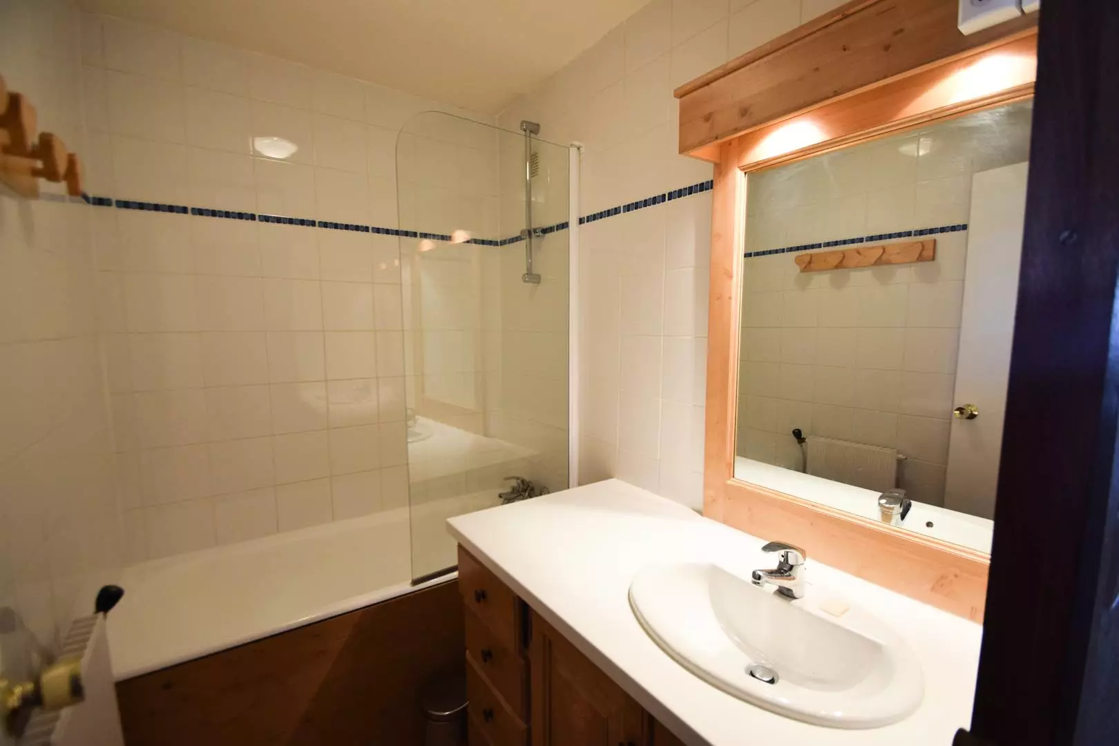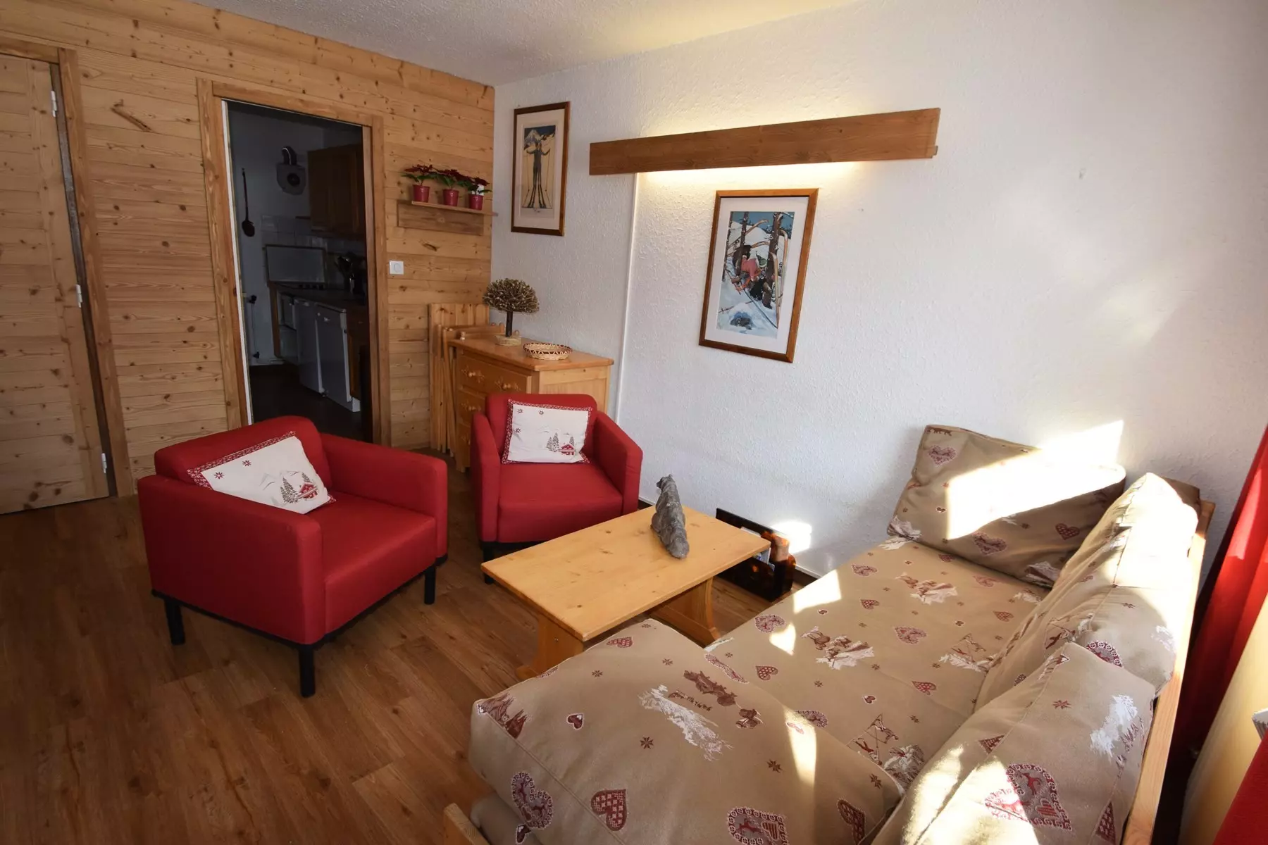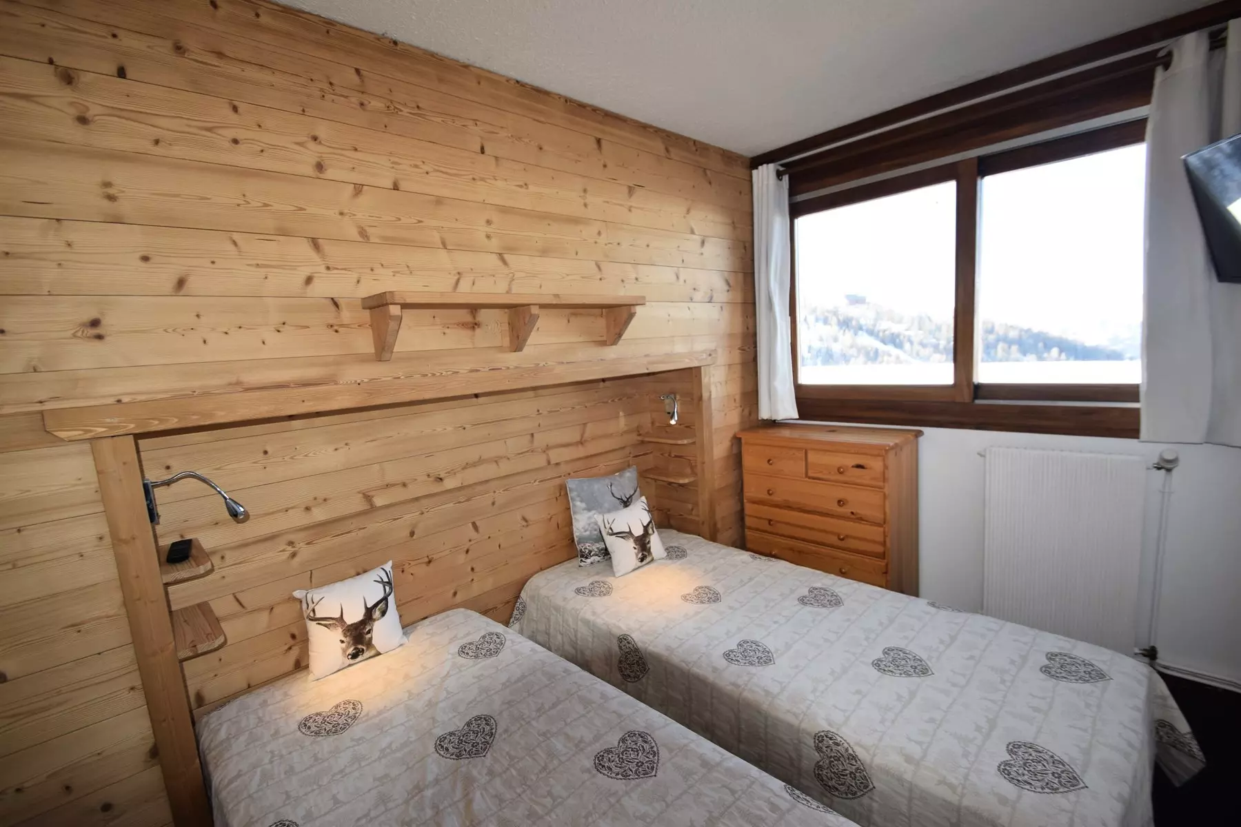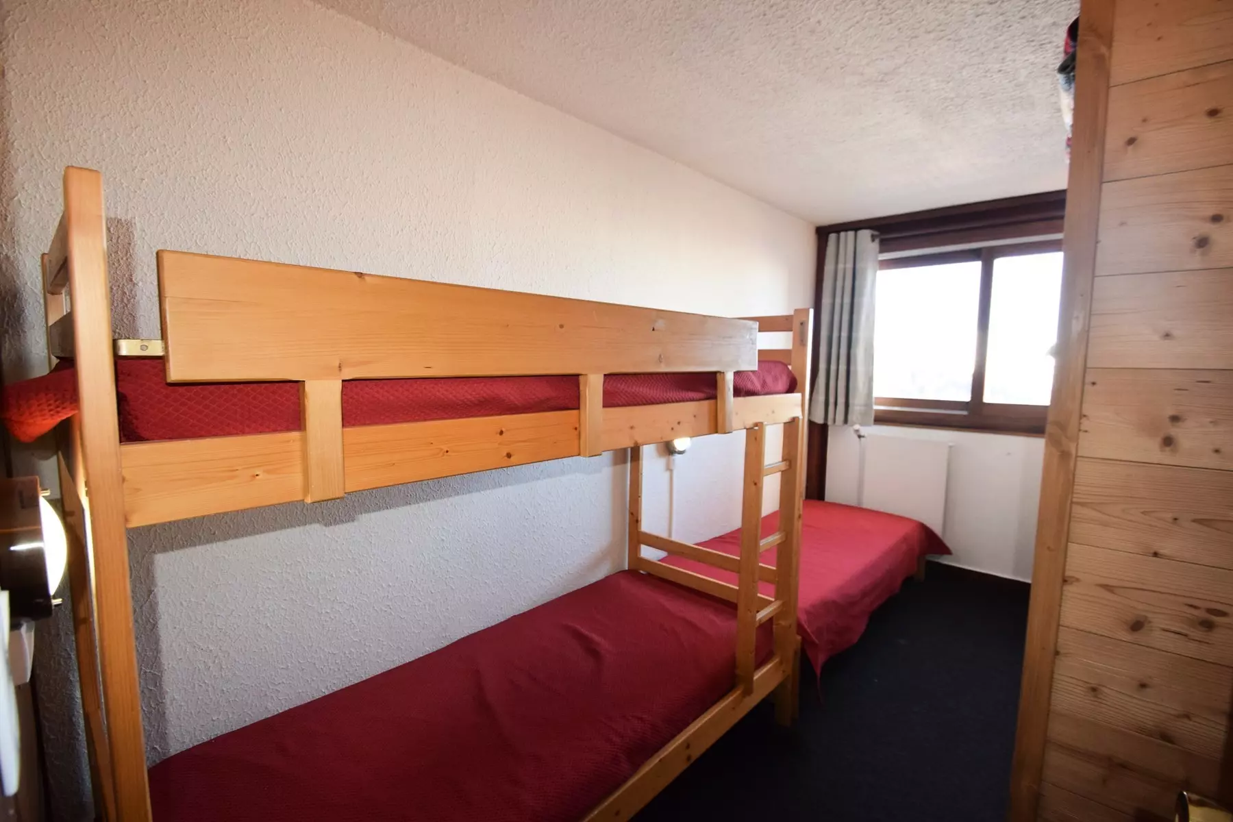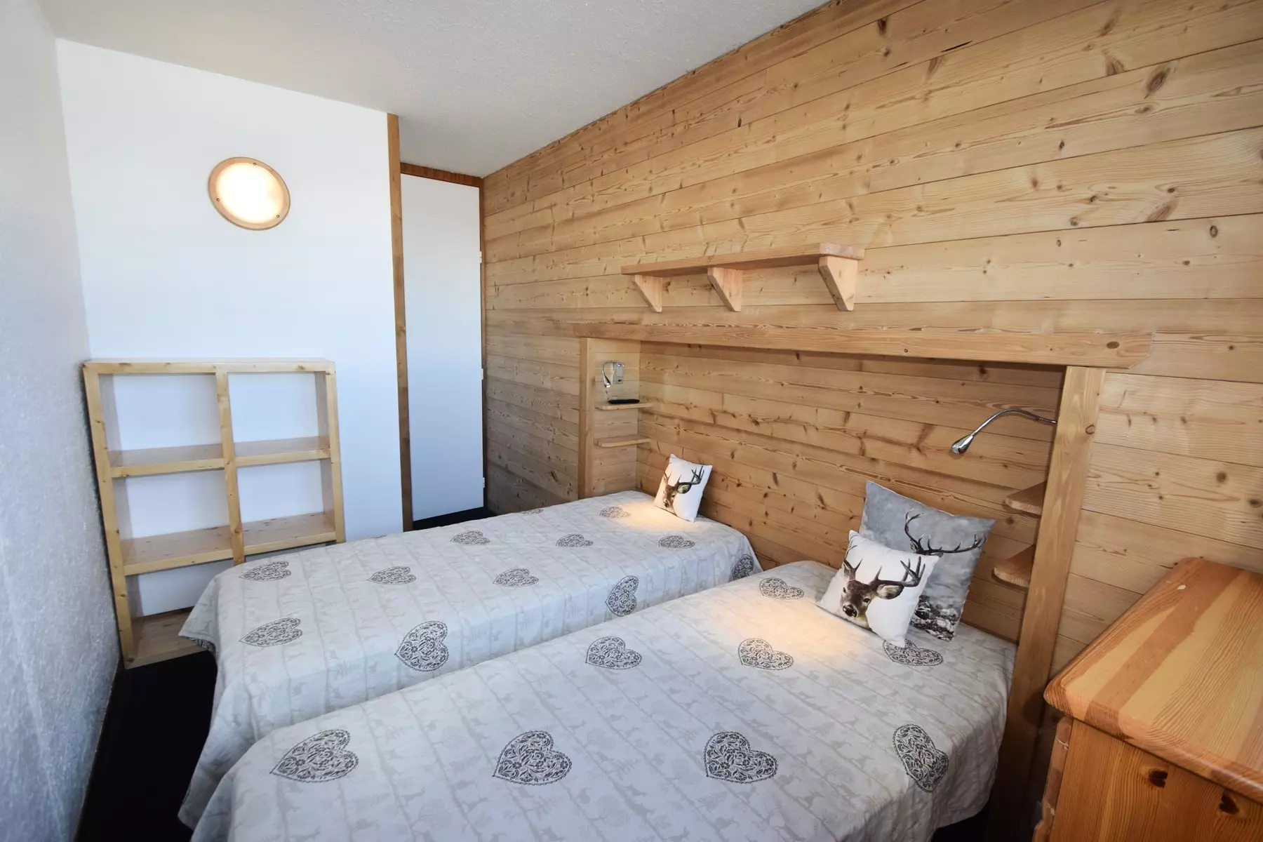 Appt 3 pièces, 6/7 pers, 50m2, exposé Sud avec balcon, vue sur les pistes, au 1er étage sans ascenseur (2 étages depuis la galerie marchande - Cuisine séparée : 4 plaques vitrocéramiques, réfrigérateur, four, lave-vaisselle - Séjour : coin repas, 2 Lits banquettes 1 pers, télévision - Chambre 1 : 2 lits simples, TV - Chambre 2 : 2 lits superposés , 1 lit 1p - SDB : baignoire, WC séparés - Salle de douche - Sol : plastique sauf chambres moquette - Literie : couvertures - Appartement non fumeur, animaux non admis. En option et en supplément: Ménage de fin de séjour, draps, serviettes, forfaits ski.