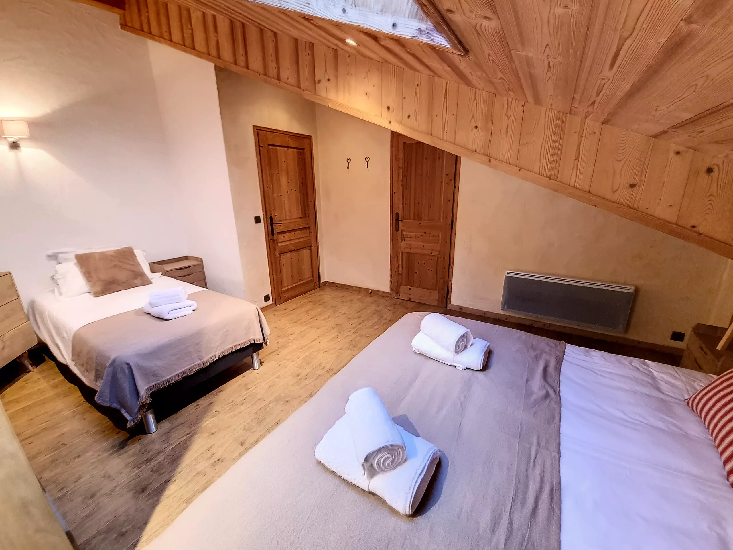 Les chambres ont été conçues avec votre confort à l'esprit. La chambre principale dispose d'un lit pour deux personnes (180x200), séparable en deux lits individuels (90x200) selon vos préférences, et bénéficie d'une salle d'eau privative. Les deux autres chambres sont également équipées de salles de bain privatives, offrant une intimité appréciable. Les lits superposés dans la deuxième chambre ajoutent une touche ludique à l'ensemble avec également une salle de douche en suite.