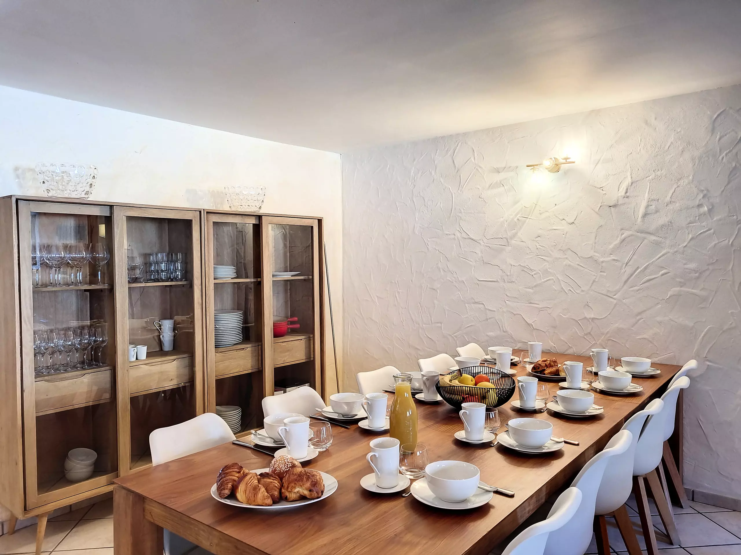 La cuisine entièrement équipée, ouverte sur le salon/séjour, est un paradis pour les amateurs de cuisine. Vous y trouverez tout le nécessaire pour préparer des repas délicieux et conviviaux.
