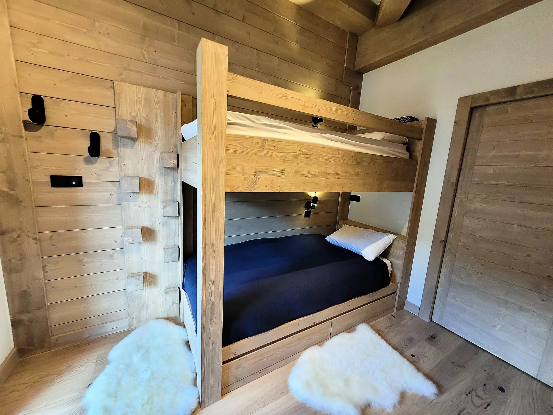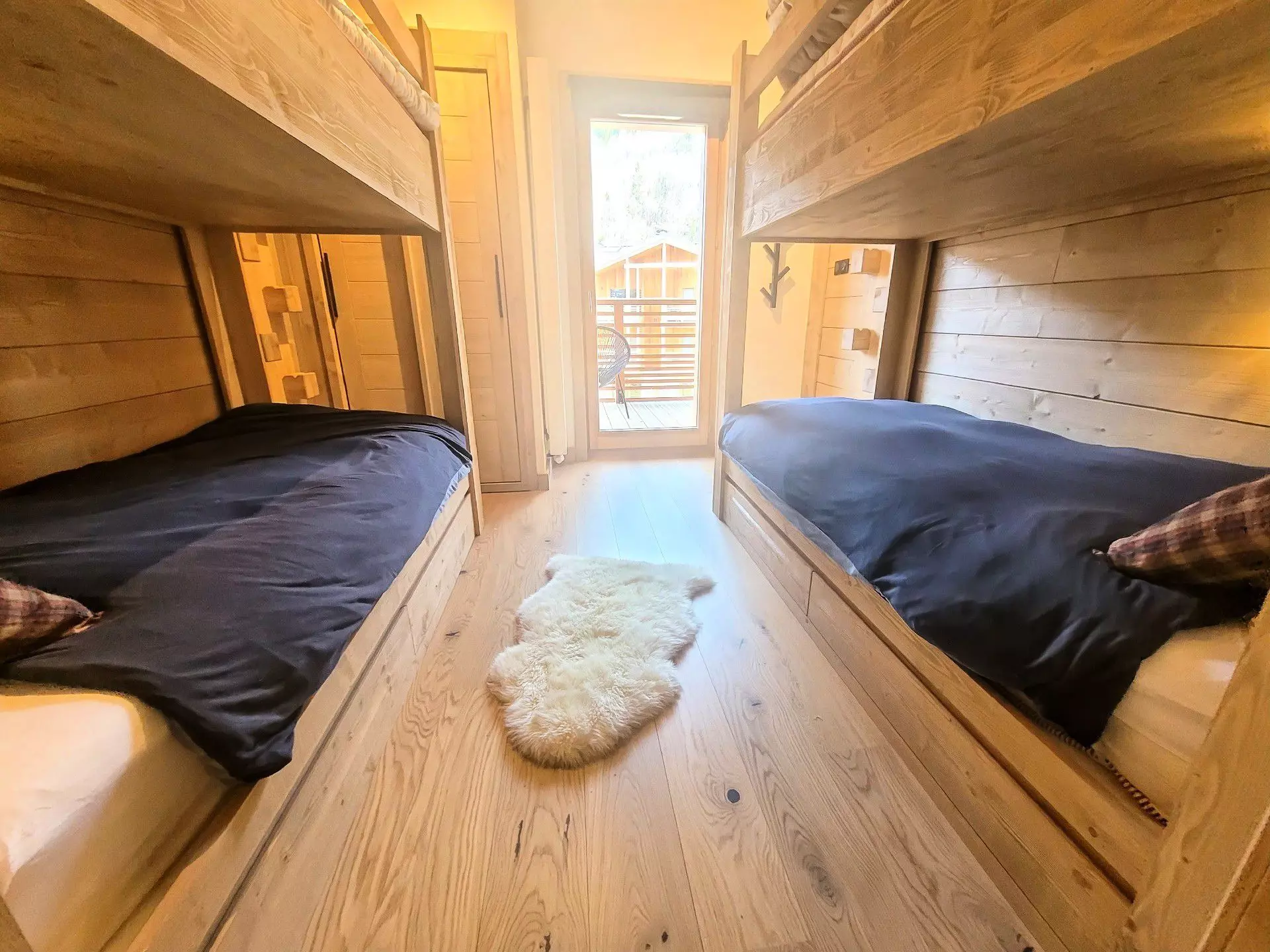 - une chambre avec 2x deux lits superposés de 90 cm , soit 4 couchages simples, accès au balcon ( attention acces aux lits du haut deconseillé au jeune enfants)