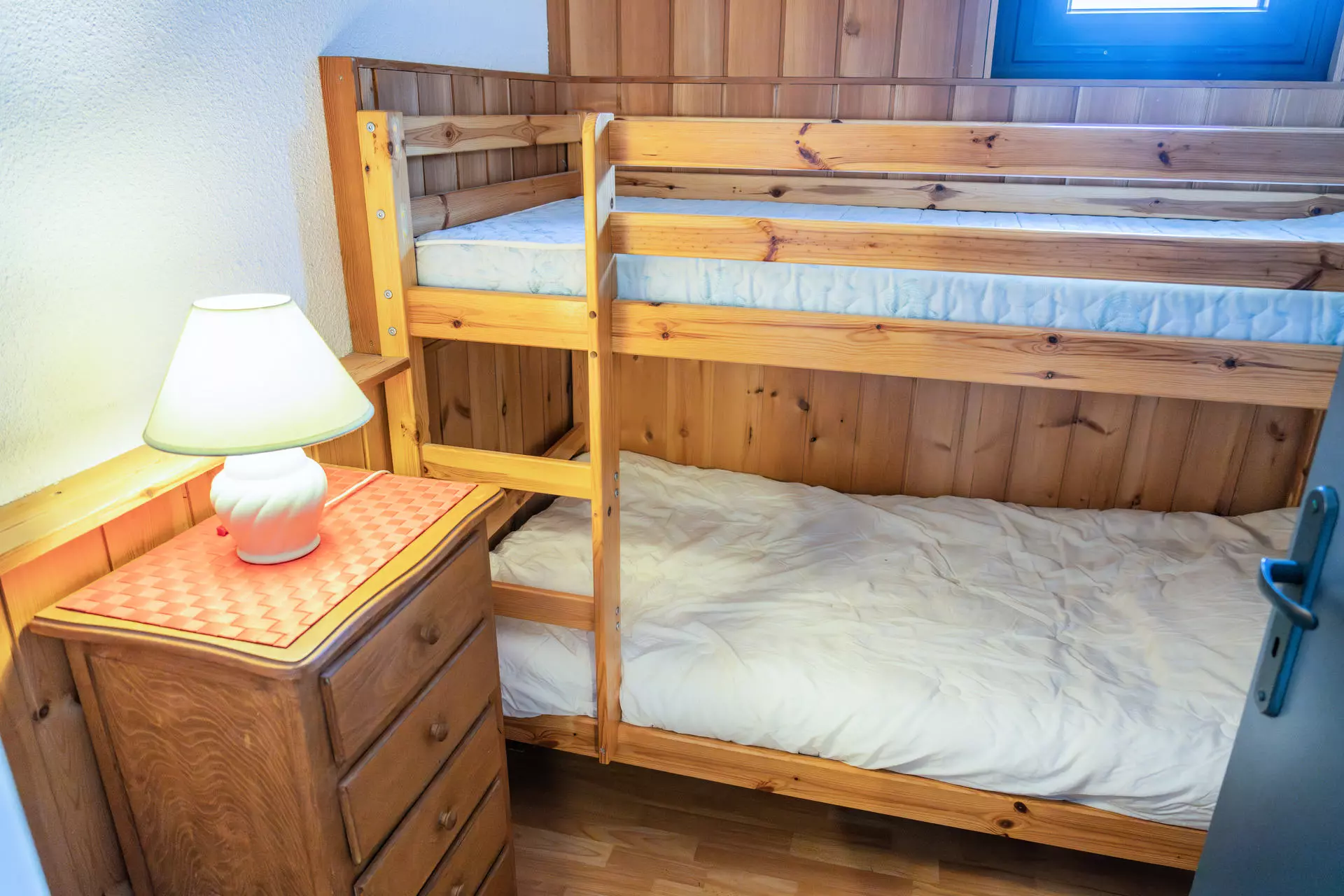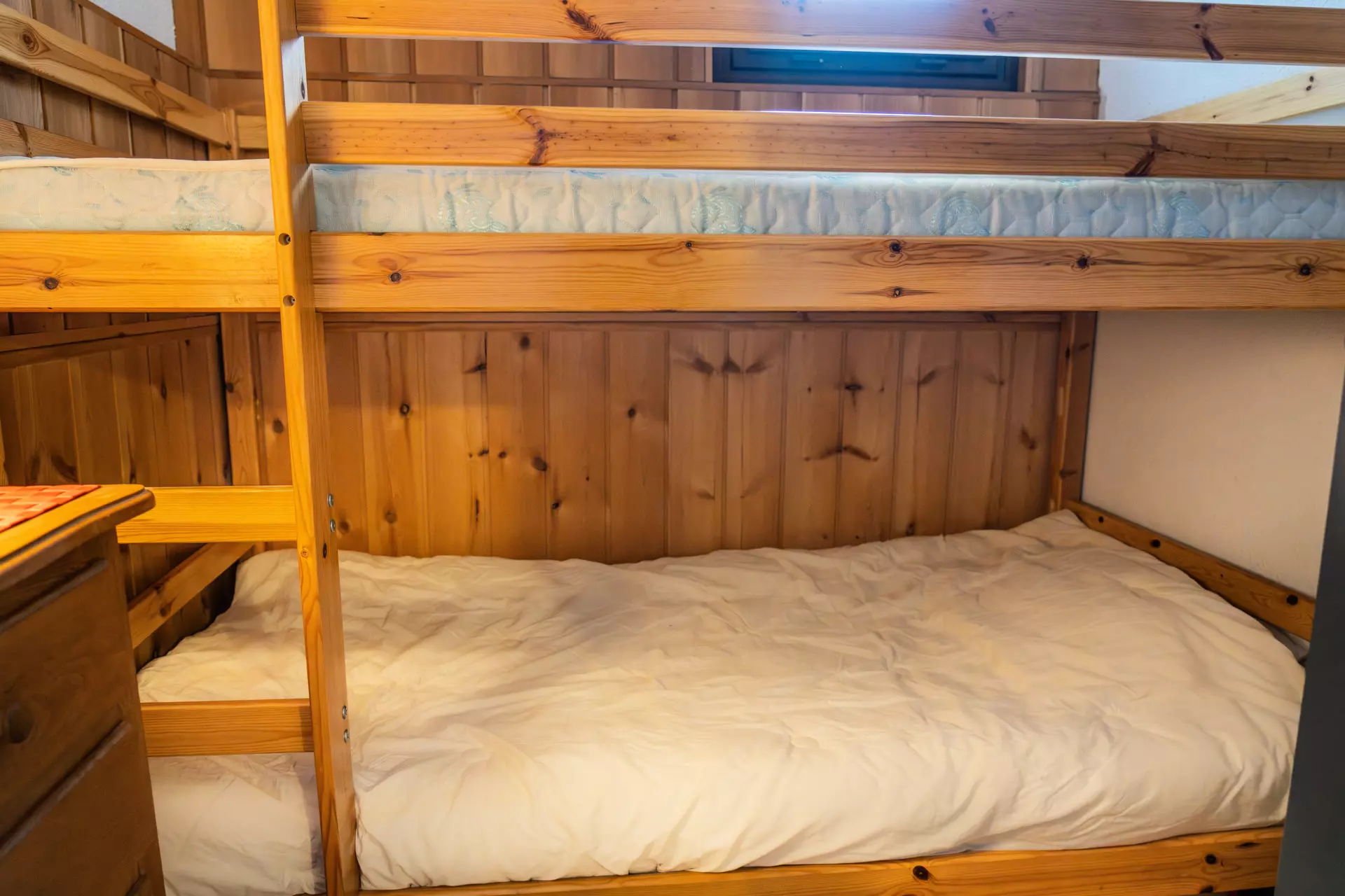 Côté couchages, vous pourrez choisir entre la chambre avec ses lits superposés en 80*190 cm, un coin montagne avec un canapé lit gigogne 2 personnes 2 x 80*190cm et un clic-clac dans la pièce à vivre.
