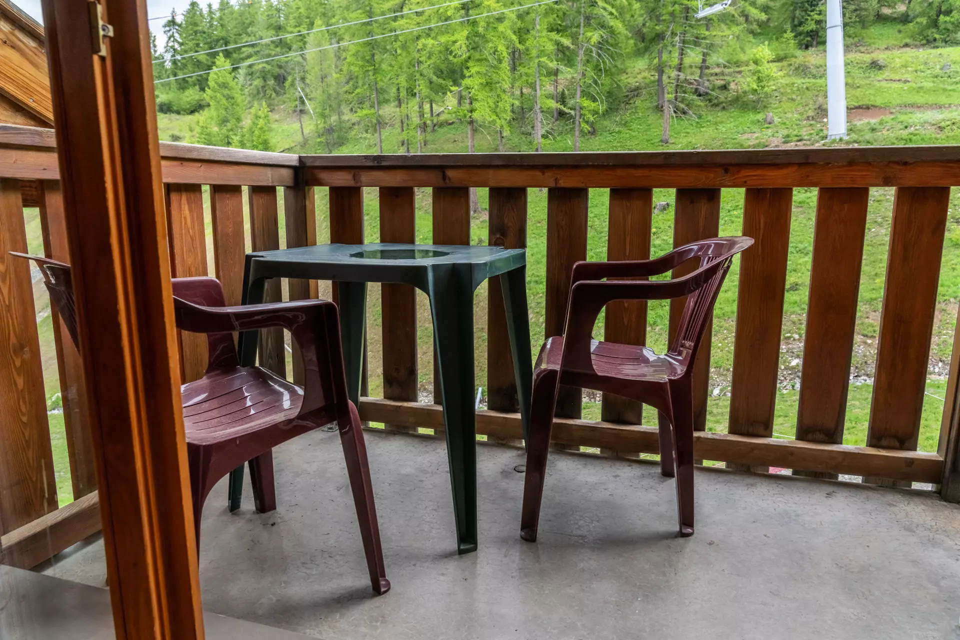 Exposé à l'est, le balcon offre une jolie vue sur les pistes de ski ; idéal pour vos petits déjeuners ensoleillés tout en observant les montagnes.