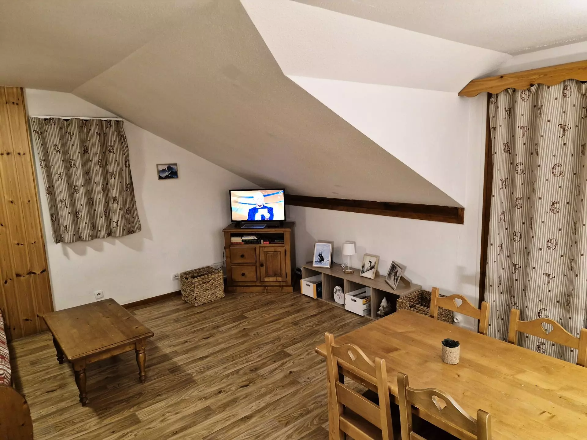 Ce logement se compose d'une entrée avec rangement menant sur le coin nuit, la salle de bain avec baignoire et les WC séparés, une grande pièce à vivre avec télévision et un canapé lit gigogne.