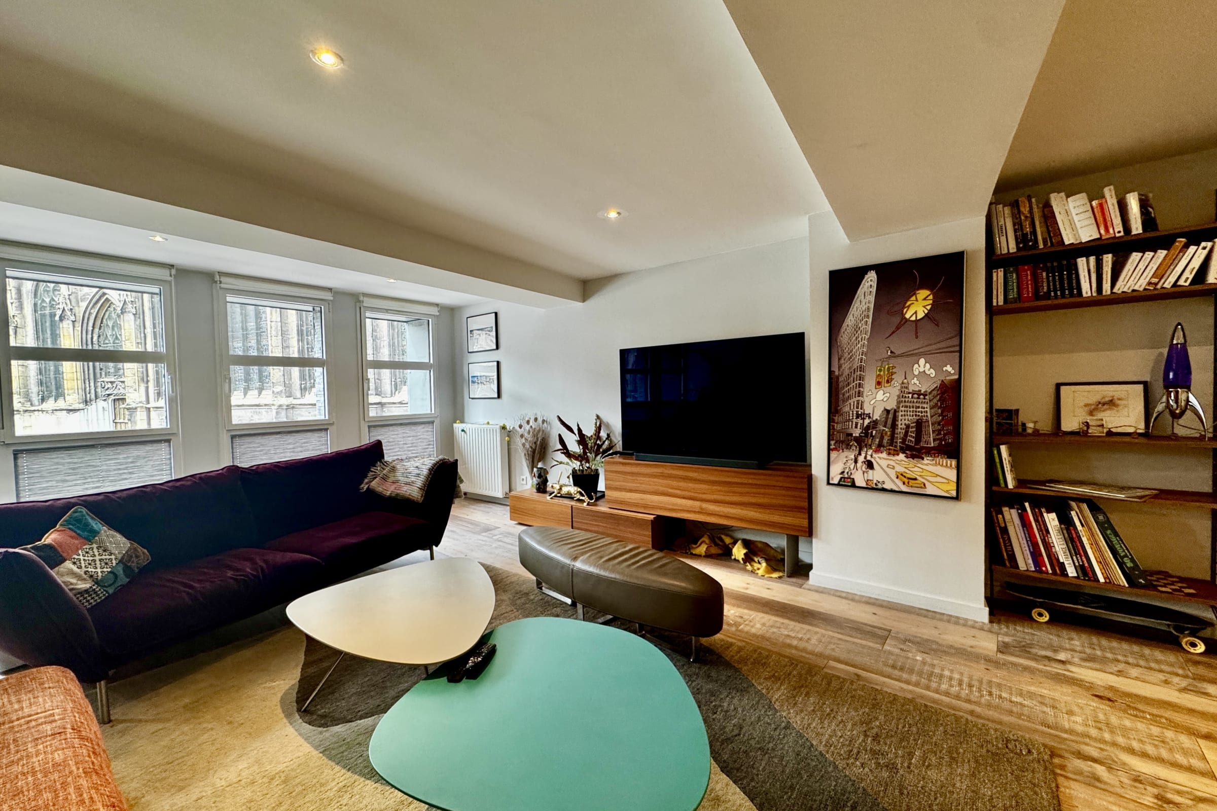 Au cœur de Rouen, rue Charles Lepneveu, ce logement d’exception se vit comme une petite maison de ville nichée dans une copropriété intimiste ( 3 lots ), où l’on se sent immédiatement chez soi. Dès l’arrivée, la magie opère : vue sur la place du Chêne Rouge, à deux pas de l’église Saint-Godard, et juste en face… la bibliothèque patrimoniale Jacques-Villon. Ici, l’hypercentre se savoure à pied : commerces à une minute, ruelles pleines de charme, places animées et façades historiques à portée de promenade.