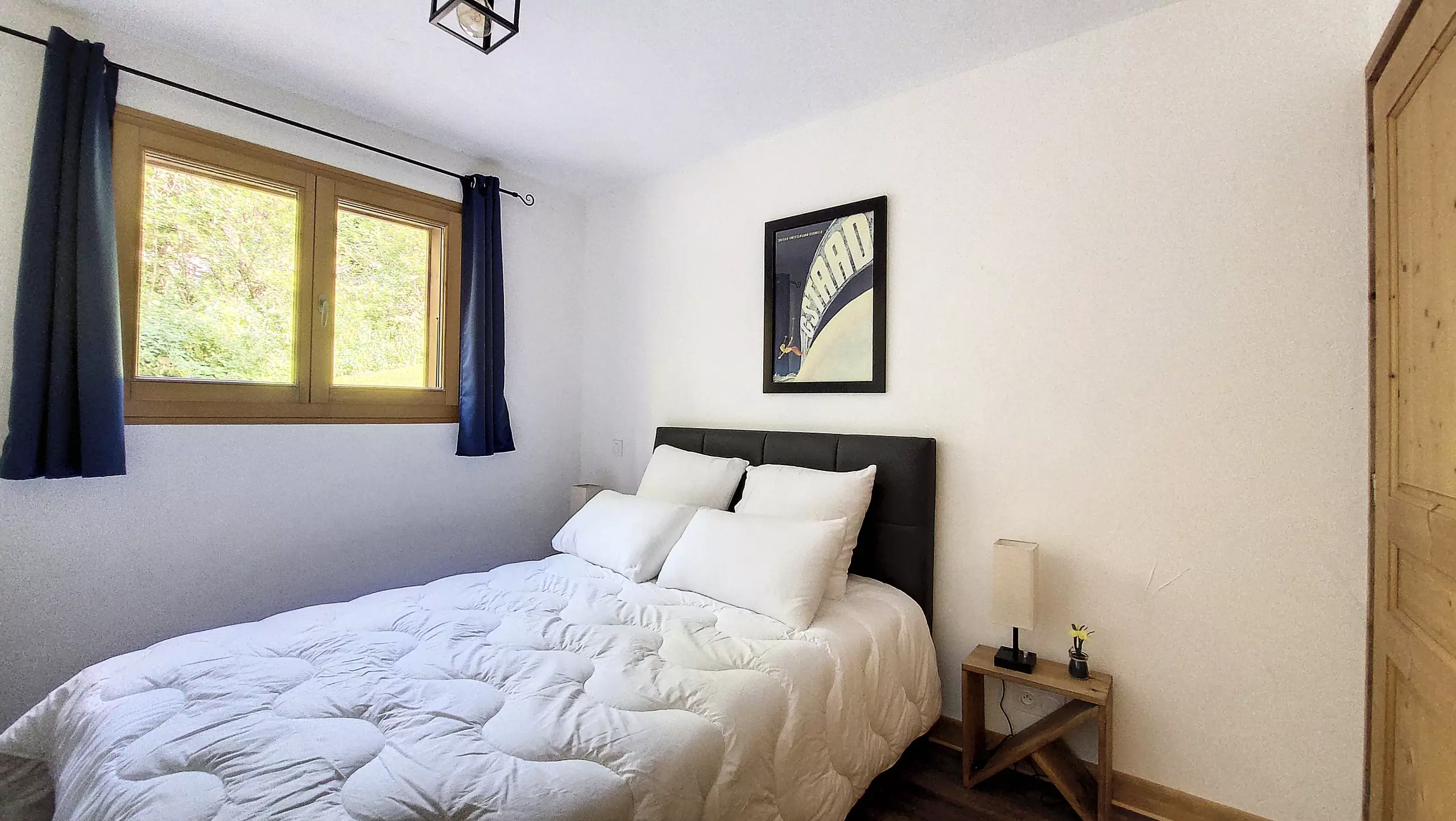 - Une deuxième chambre avec lit double (140x200), une penderie, deux tables de chevet avec lampes