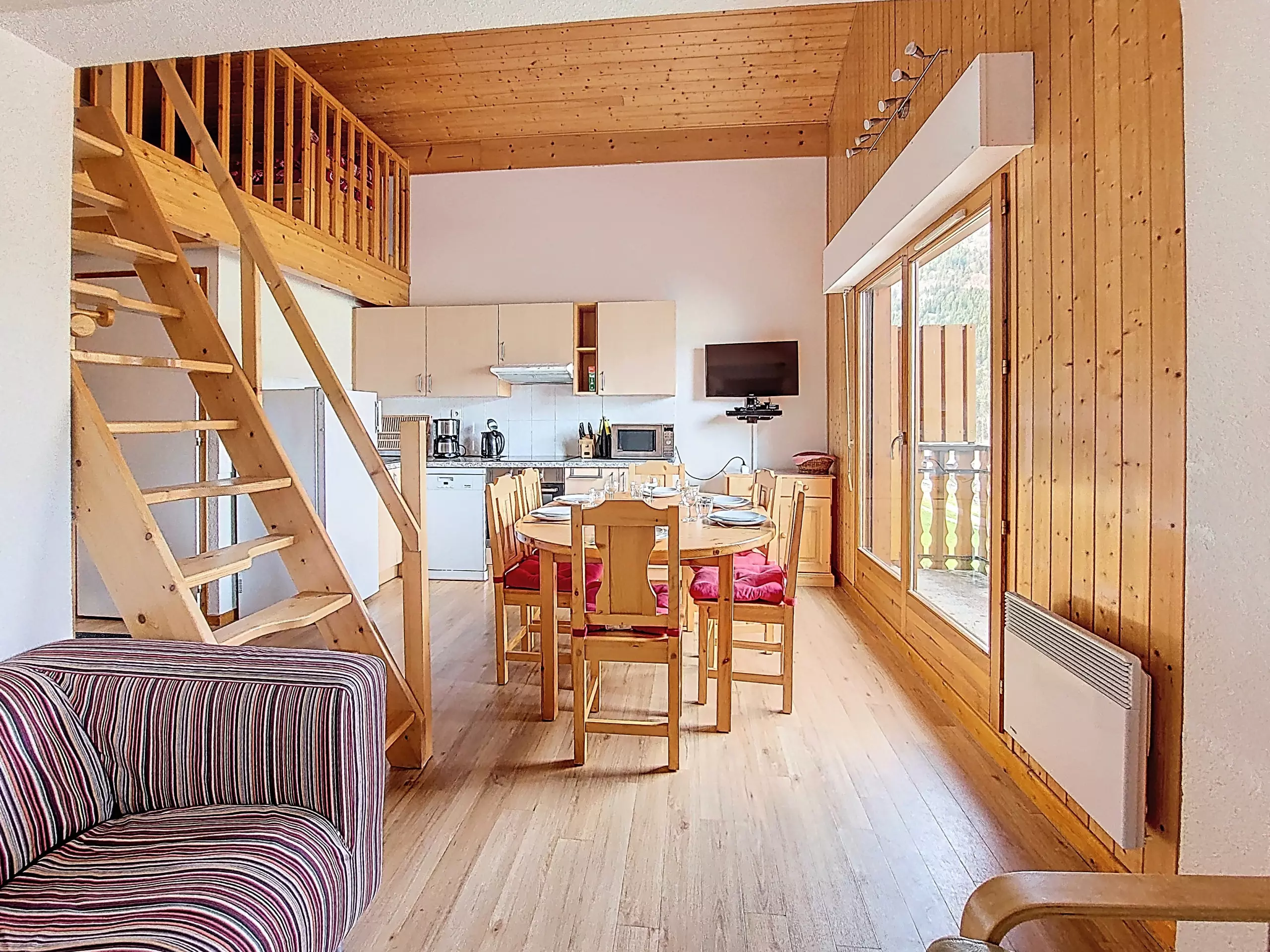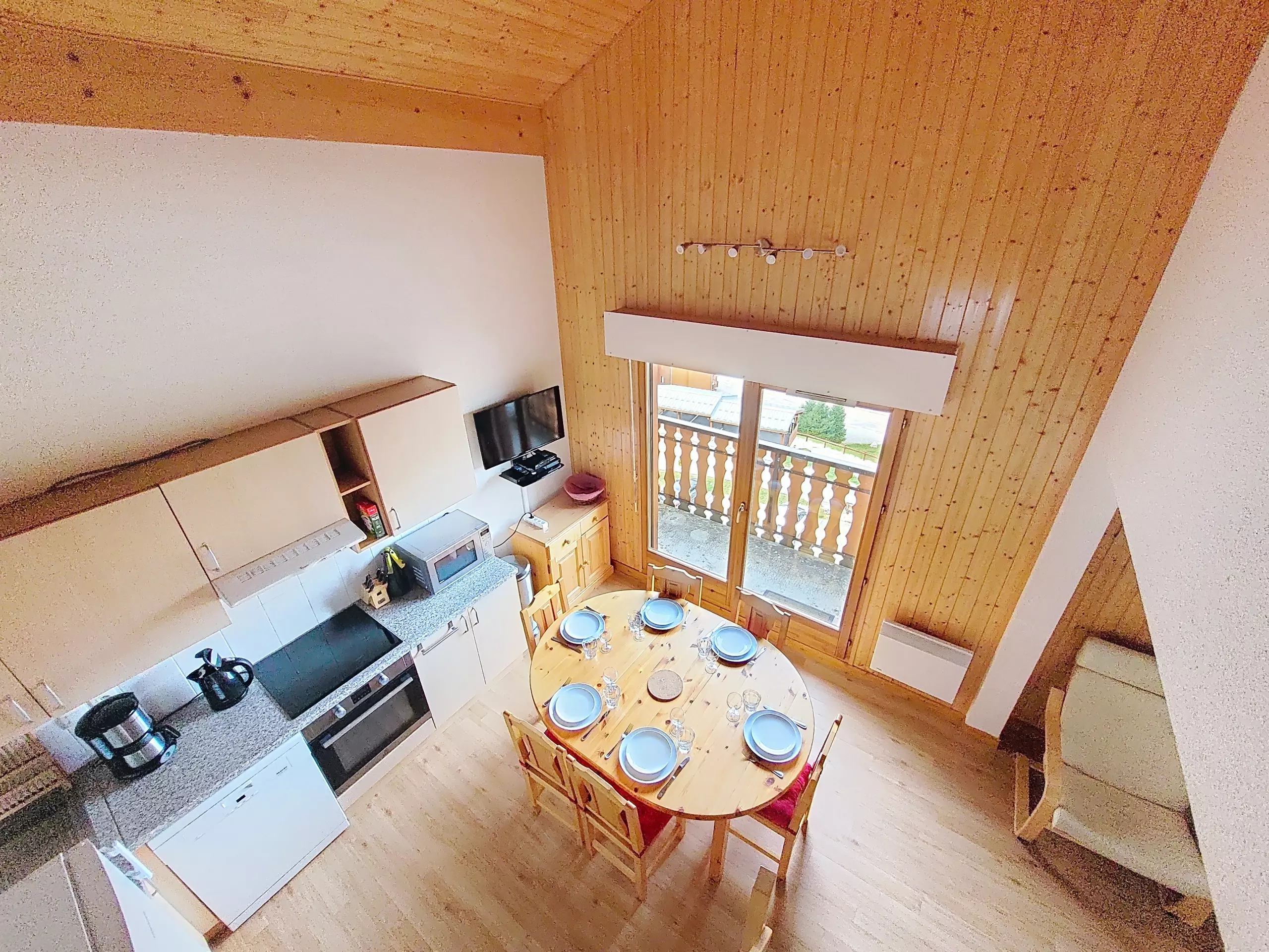 - 1 Porte fenêtre dans la cuisine donnant accès au balcon exposée Ouest avec vue sur les pistes de ski