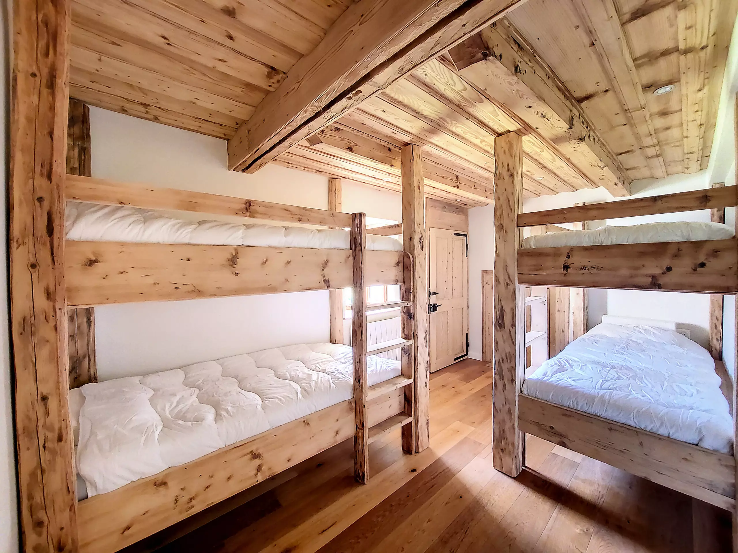 - 1 chambre avec quatre lits superposés de (4x90x190) avec placard de rangement. Vue pistes de ski.