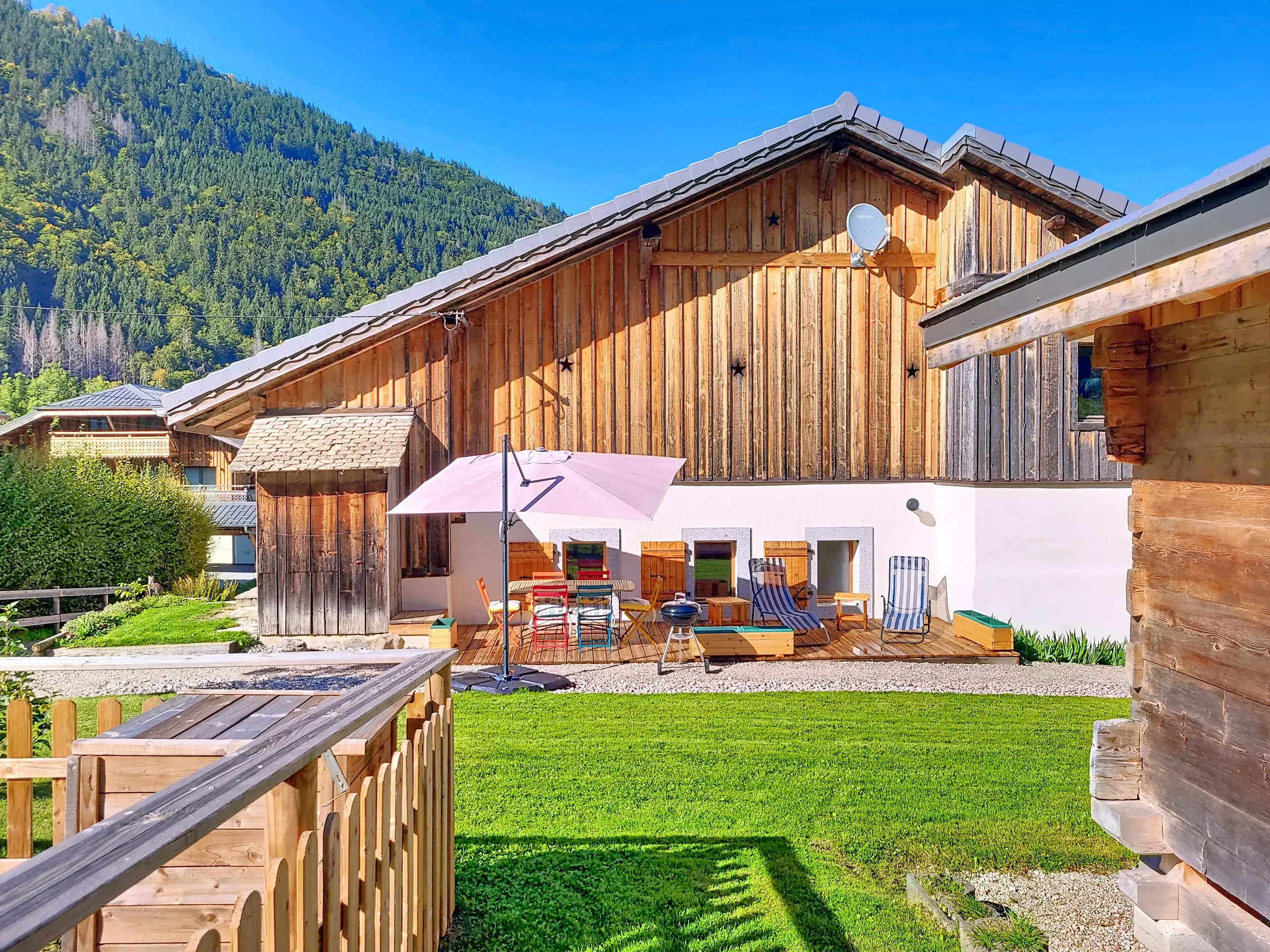 Séjournez dans cet appartement plein de charme , situé au cœur d'une vieille ferme de montagne rénovée et profitez d'un vaste terrain privée propice à la détente et aux moments de famille.