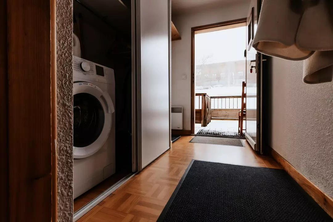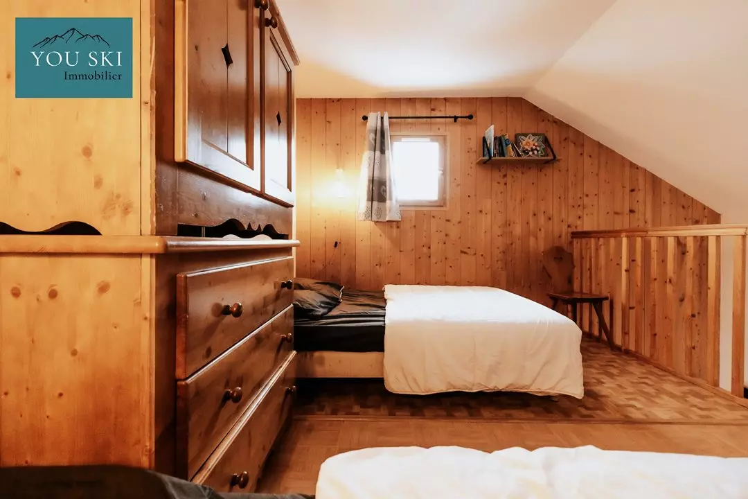 Au rez-de-chaussée, un espace fonctionnel accueille vos affaires de ski et vos chaussures. Une chambre douillette avec lit double (140x190 cm) vous attend pour un repos bien mérité, tandis qu’une salle de douche et un WC séparé assurent tout le confort nécessaire après vos premières descentes.