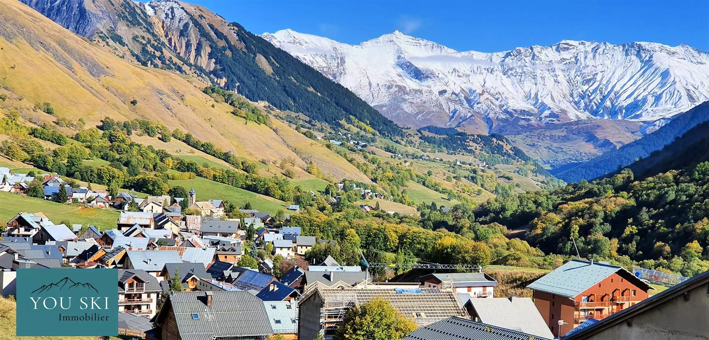 You Ski Immobilier vous invite à découvrir le duplex CDA 54, un cocon chaleureux et tout confort pour 8 personnes, idéalement situé à l’entrée du village de Saint-Sorlin-d’Arves, près de l’église, au cœur du domaine skiable des Sybelles.