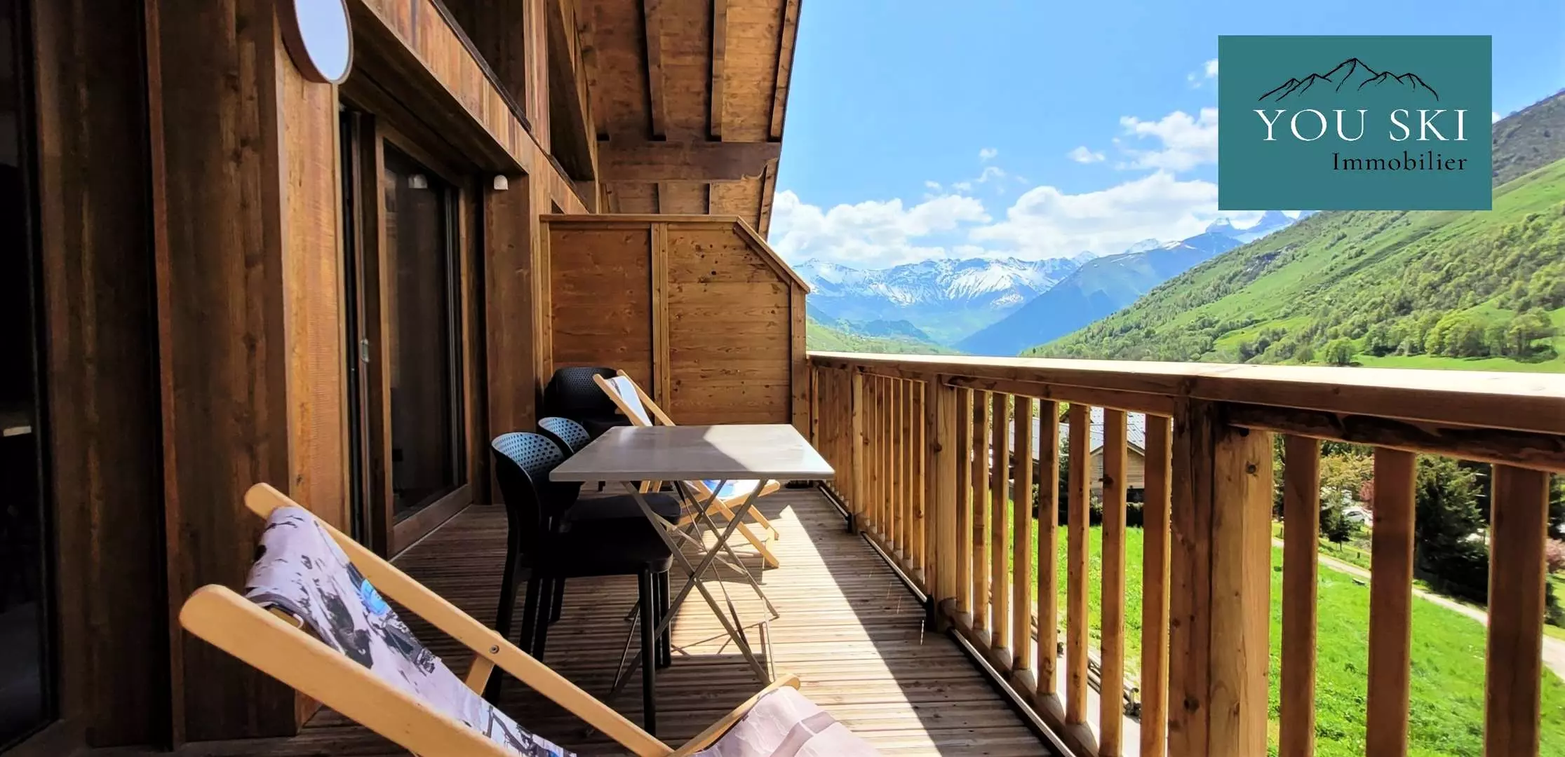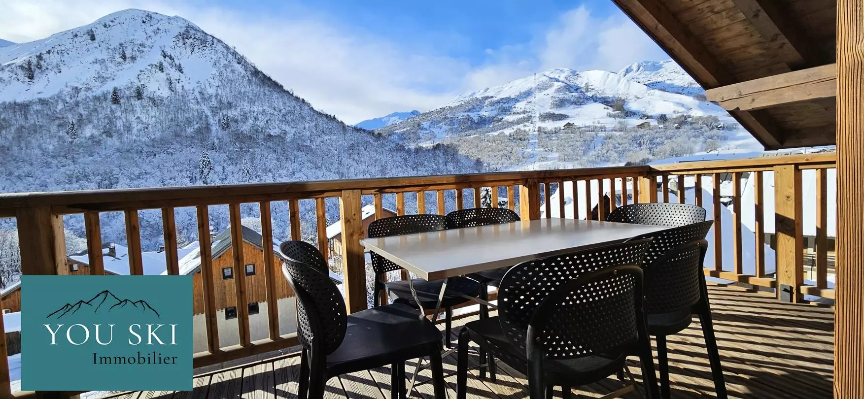 Le balcon panoramique vous offre un espace idéal pour admirer le ciel alpin, respirer l’air pur et contempler les montagnes, en hiver comme en été.
